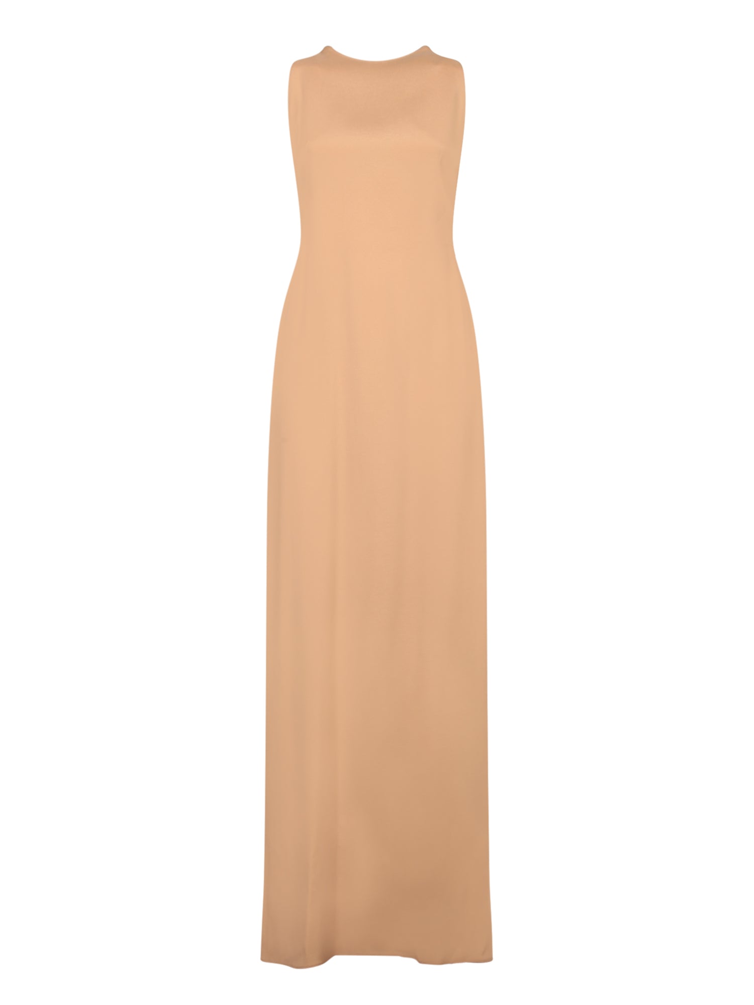 Long sleeveless dress. Soft satin fabric. Delicate pink color.