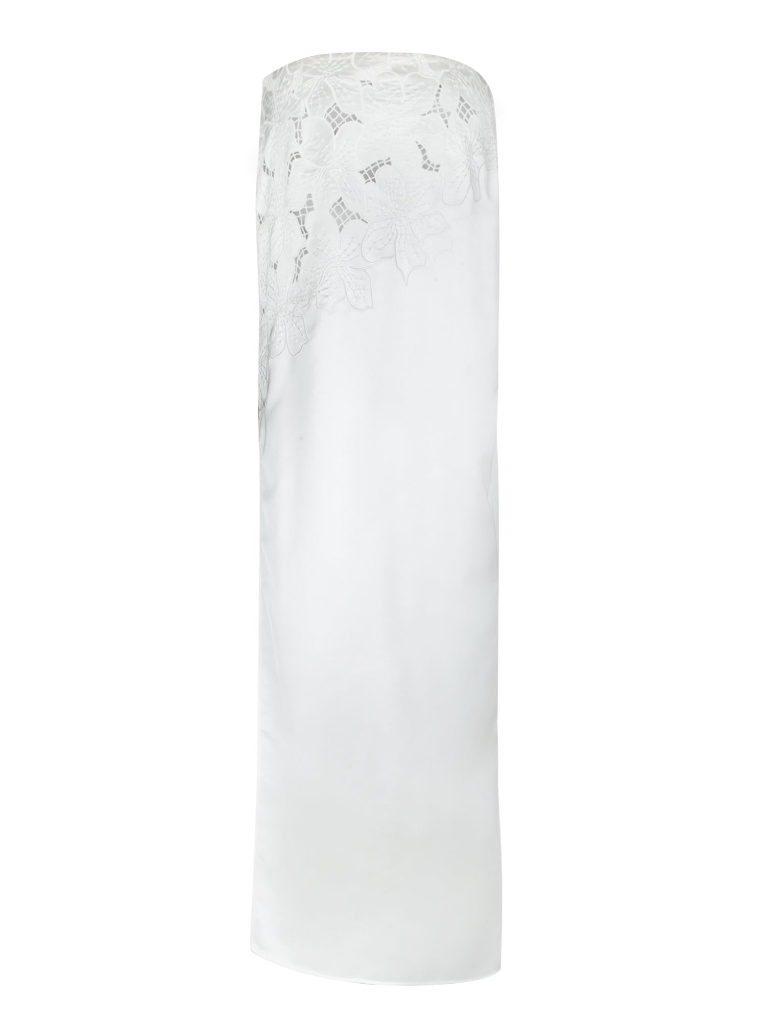Timeless elegance meets contemporary design in Genny's Long Flower Skirt, crafted in white satin with sophisticated lace inlays and an asymmetrical silhouette that flows with every movement.