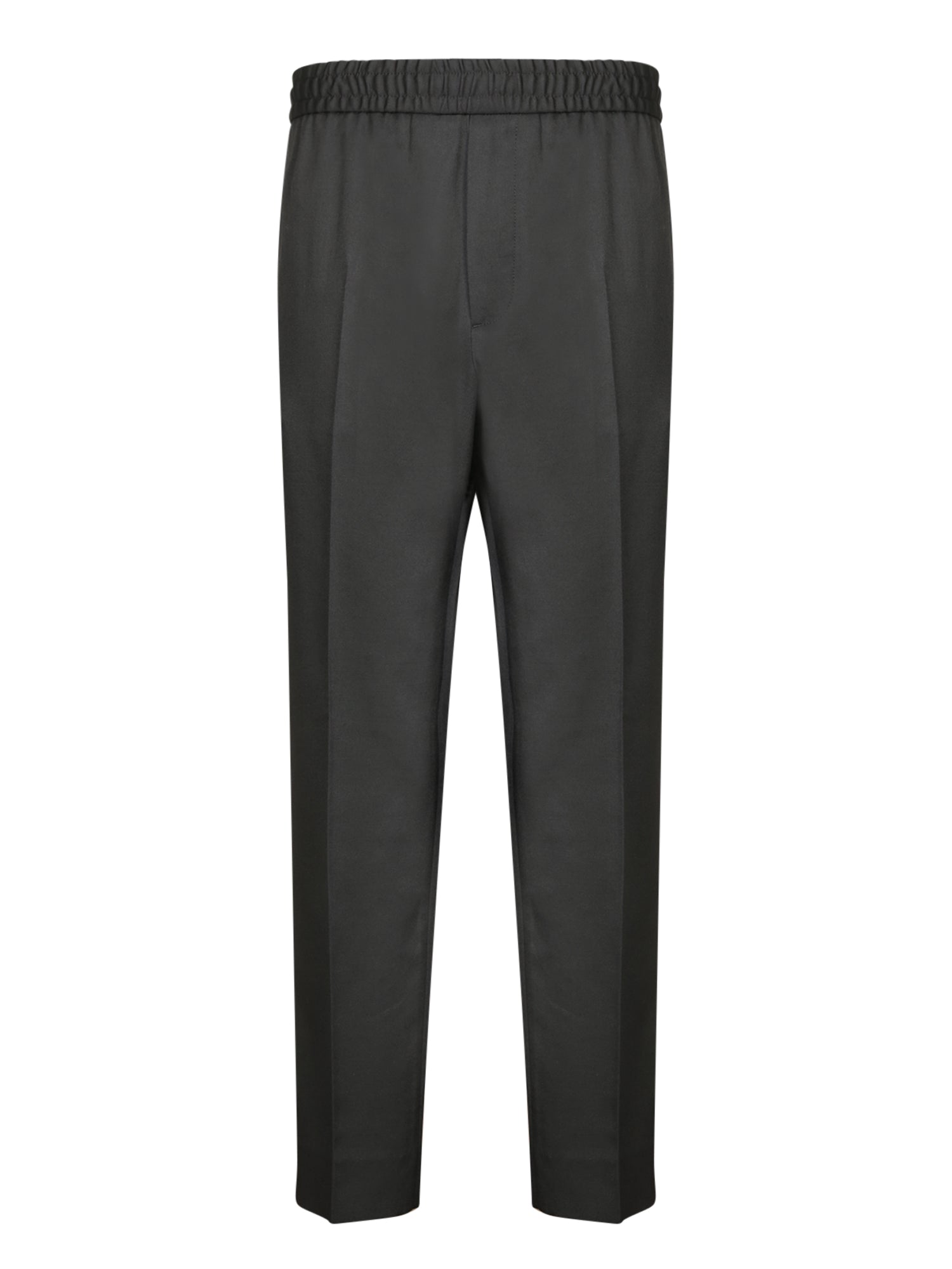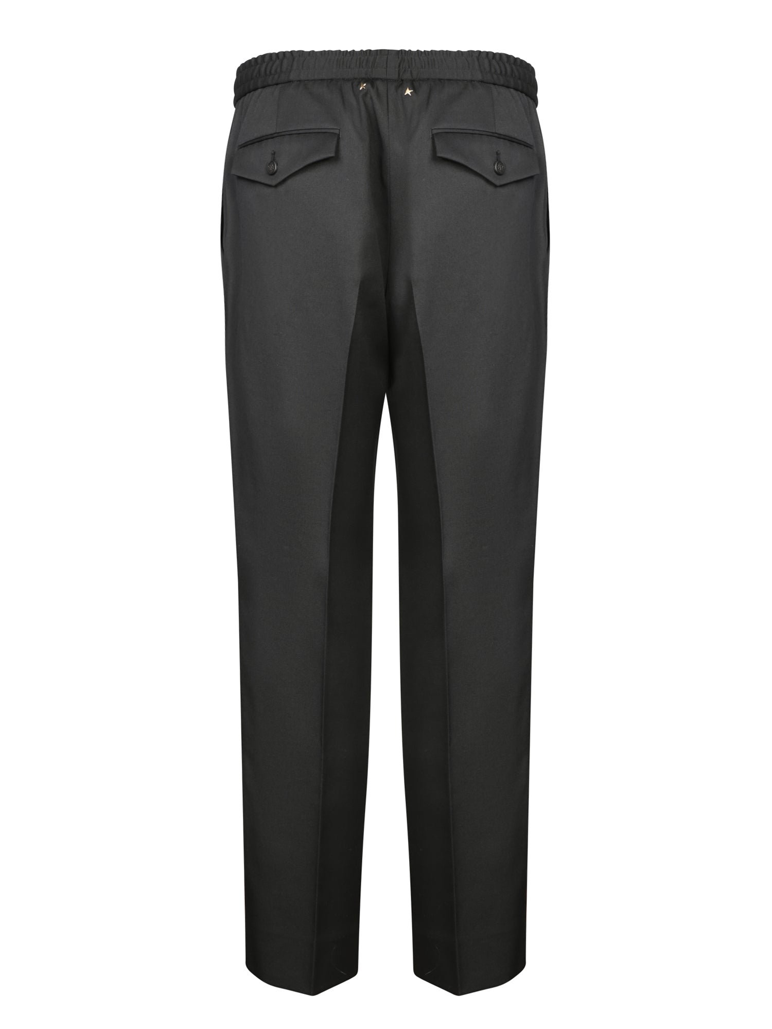 These refined black wool gabardine trousers from Golden Goose feature a clean silhouette and a comfort fit, enhanced by a minimalist design with a flexible elasticated waistband. An essential item for a sophisticated wardrobe.