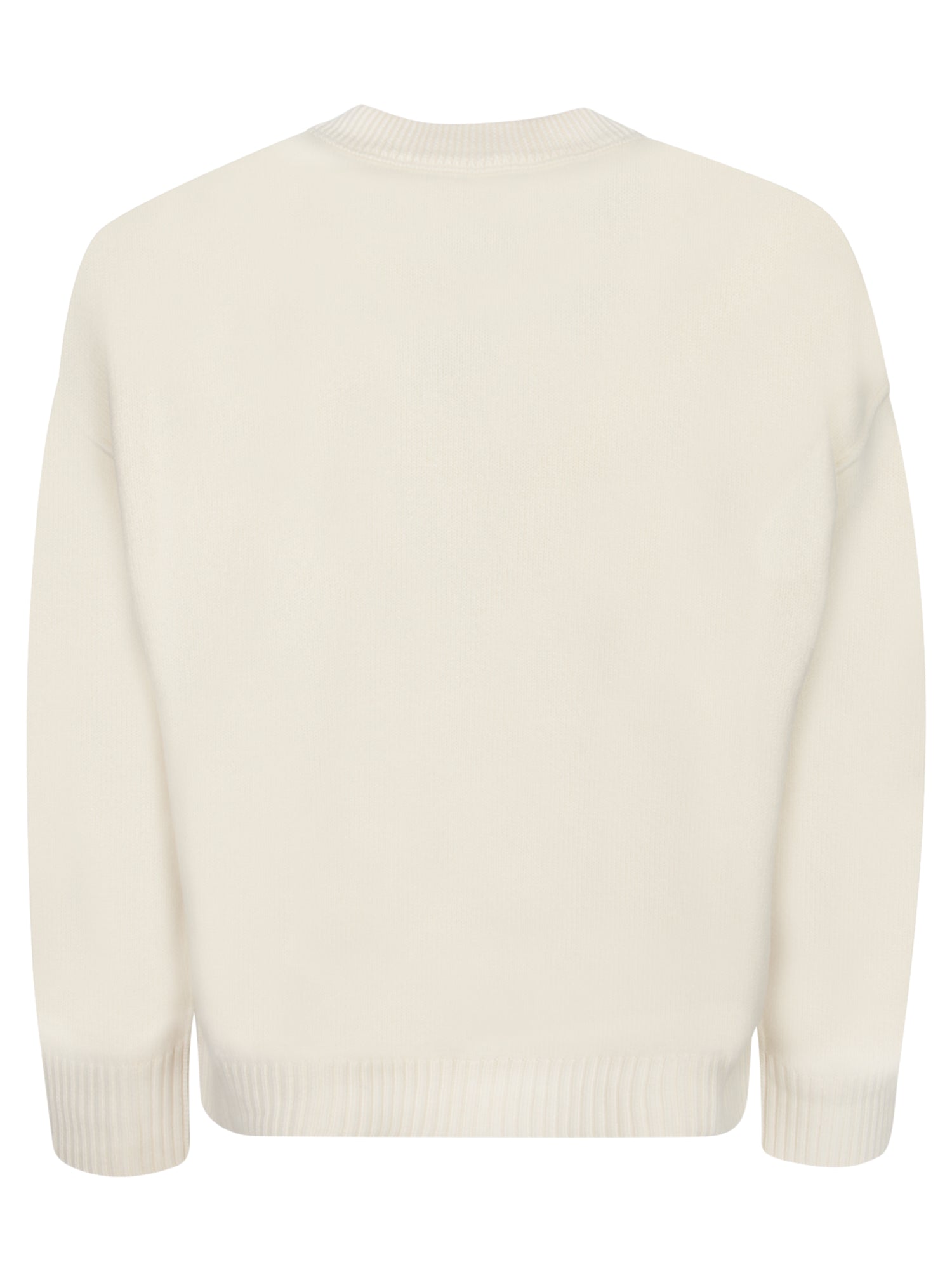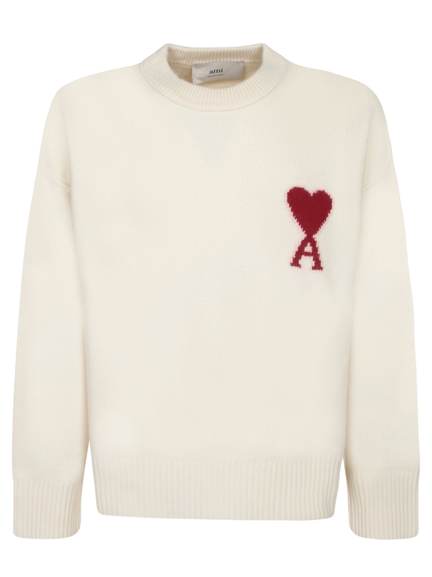 Fine knit sweater with crew neck. Red stylized heart detail on the chest. Ribbed trims.
