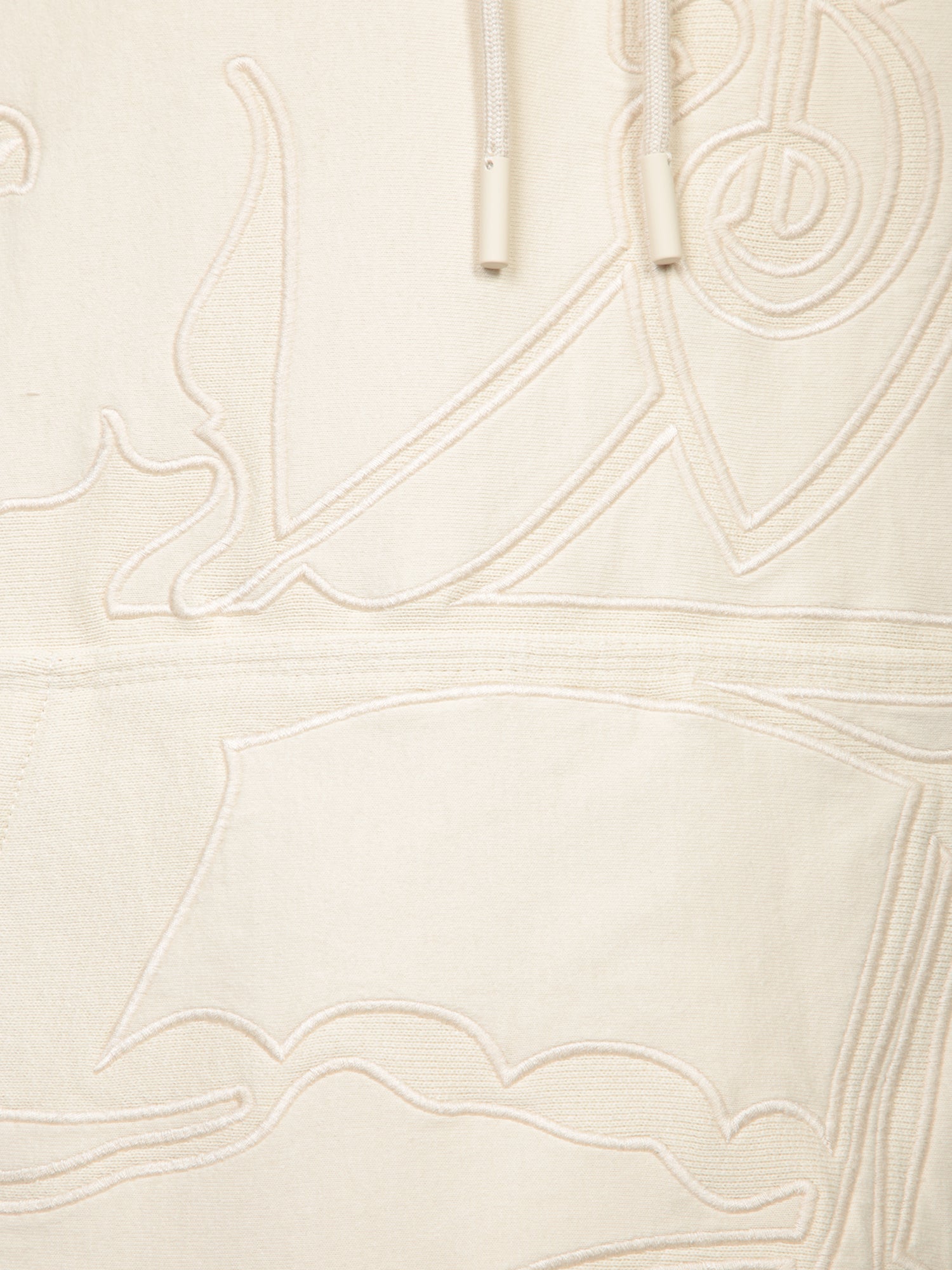 This Burberry sweatshirt features a bold embossed Macro Knight design, blending comfort with distinctive style. A regular fit and a drawstring hood provide practicality and a contemporary touch.