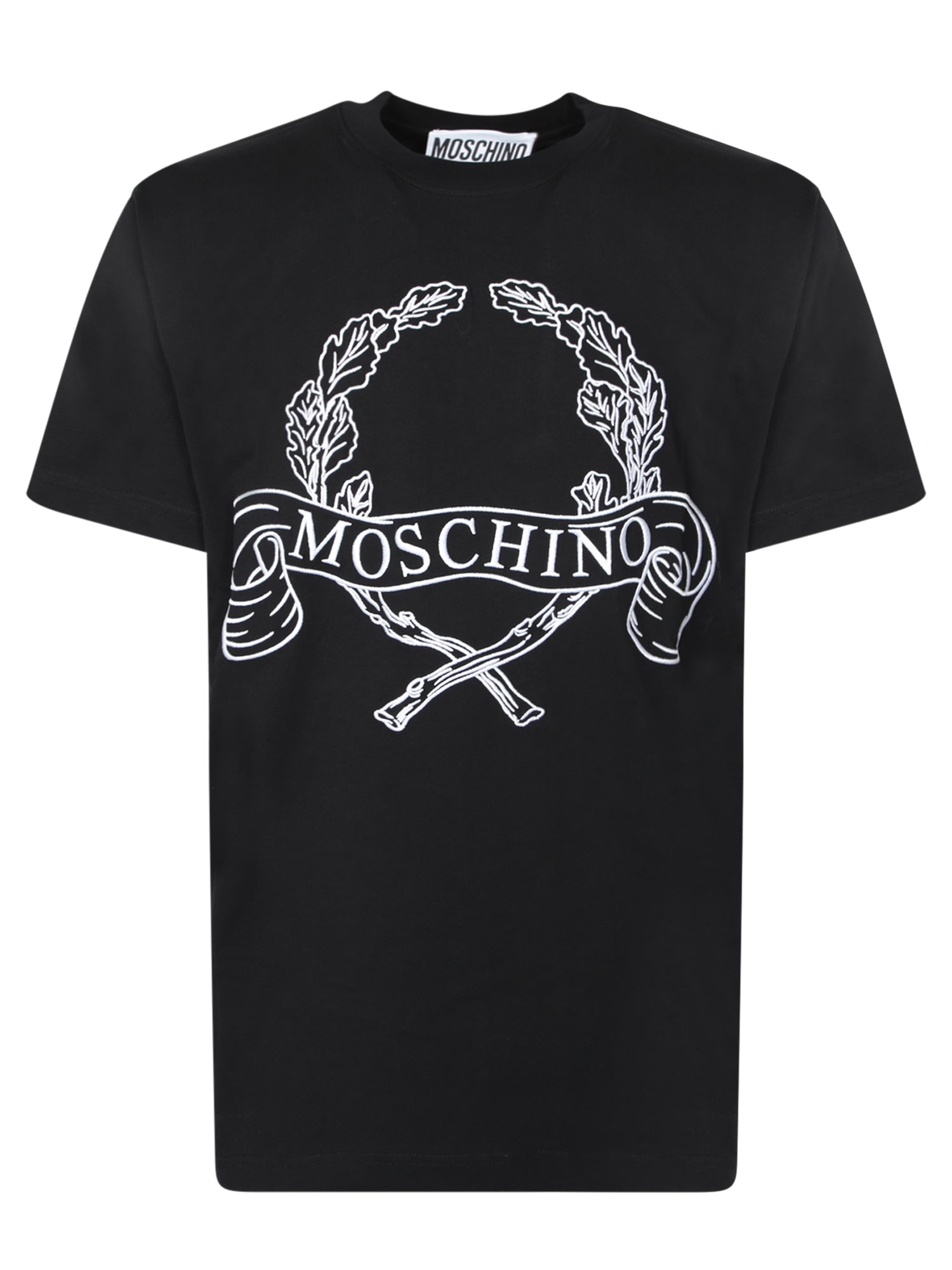 A bold take on the classic logo, this black Moschino t-shirt features a striking white logo print, perfect for a sophisticated urban look.