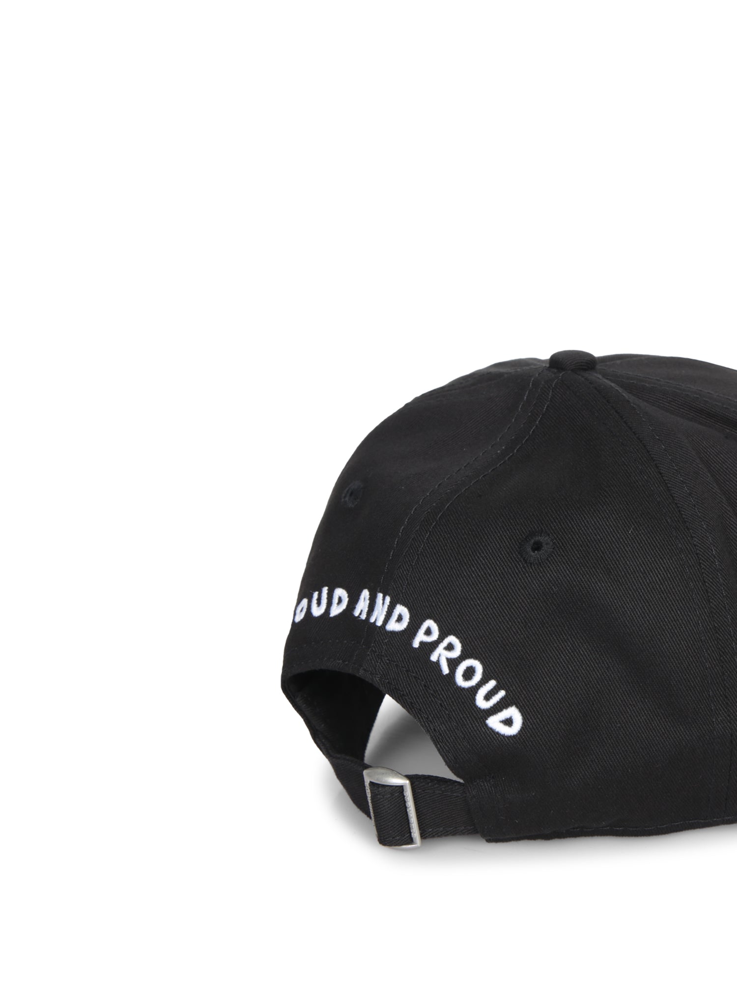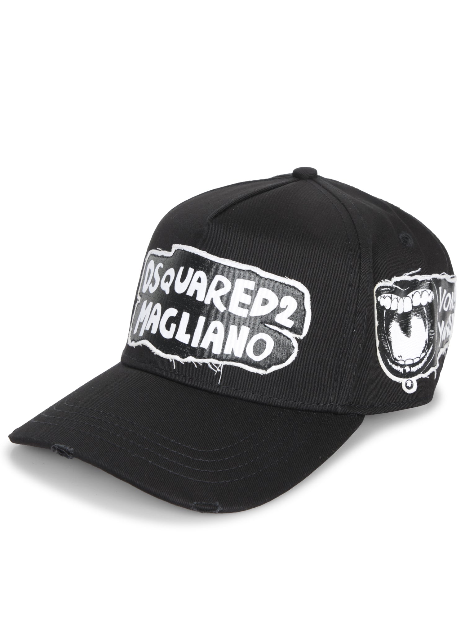 Technical fabric hat. Design with curved visor. Graphic decoration and logo.