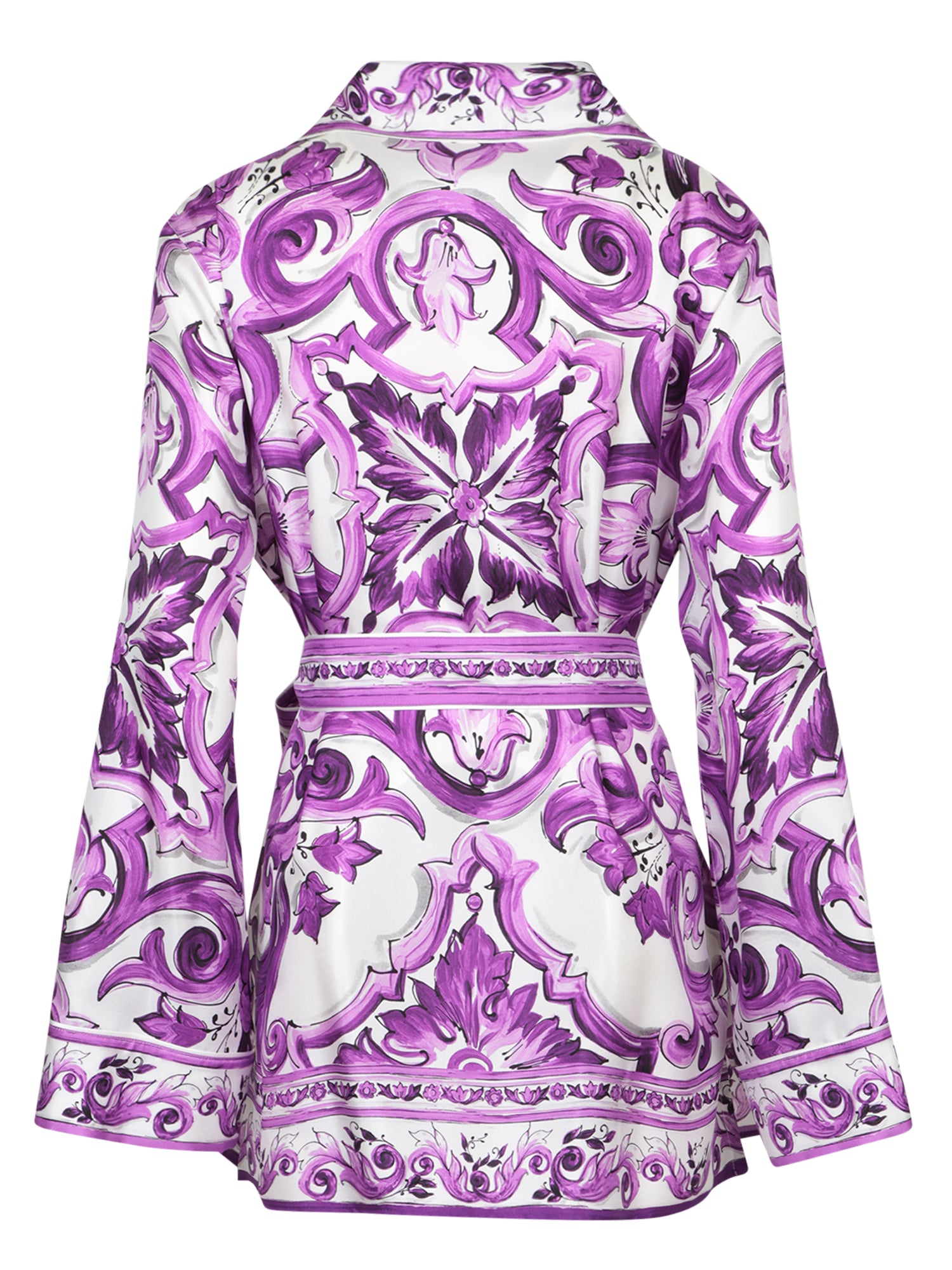 Long-sleeve shirt with maiolica print. Coordinated belt. Front button closure.
