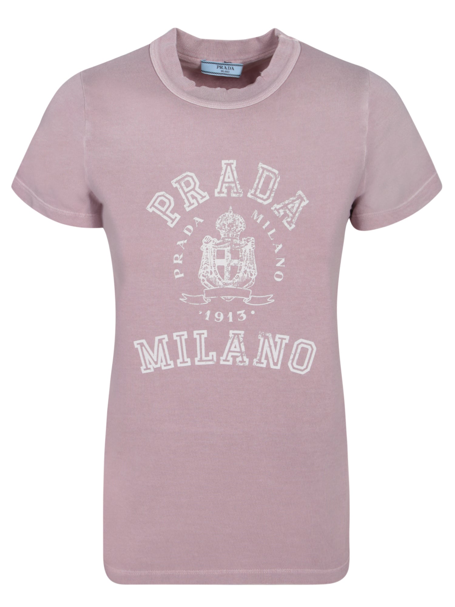 Short-sleeve jersey T-shirt. PRADA logo printed on the front.
