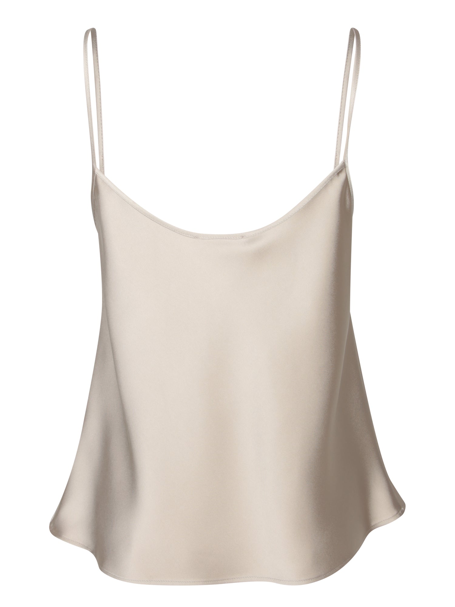 Timeless elegance with this Blanca Vita mastic satin tank top, perfect for a sophisticated evening look. The simple yet refined design highlights the natural drape of the satin fabric.