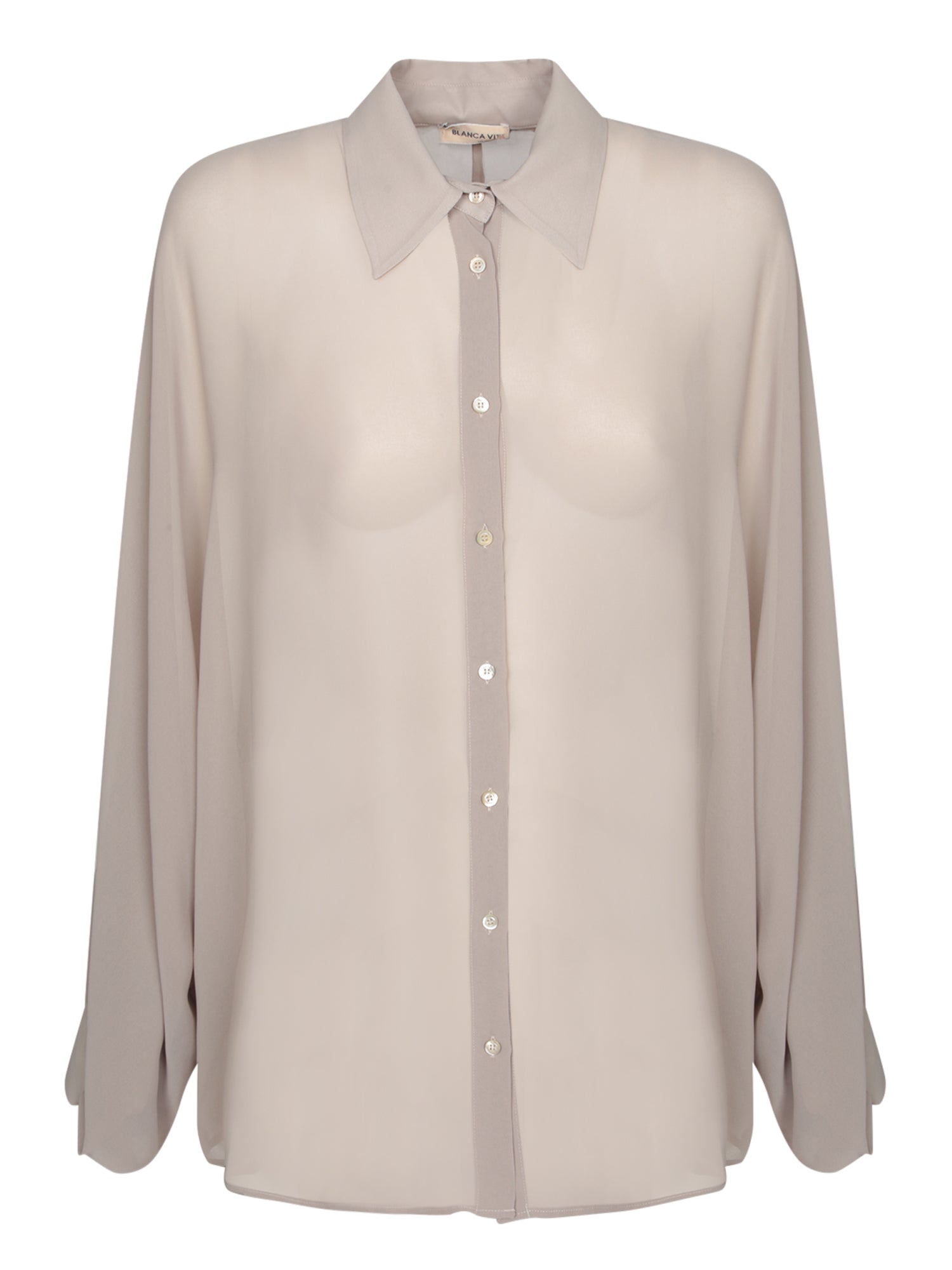 This Blanca Vita mastice georgette shirt exudes fluid elegance with its loose and versatile cut, perfect for work pairings or more formal occasions.