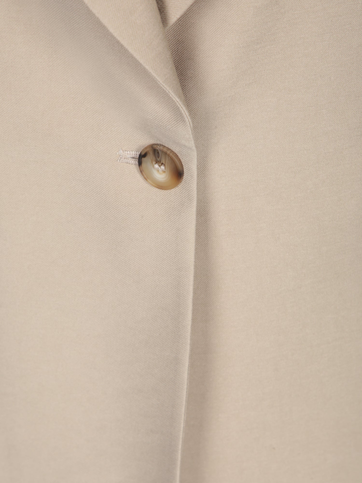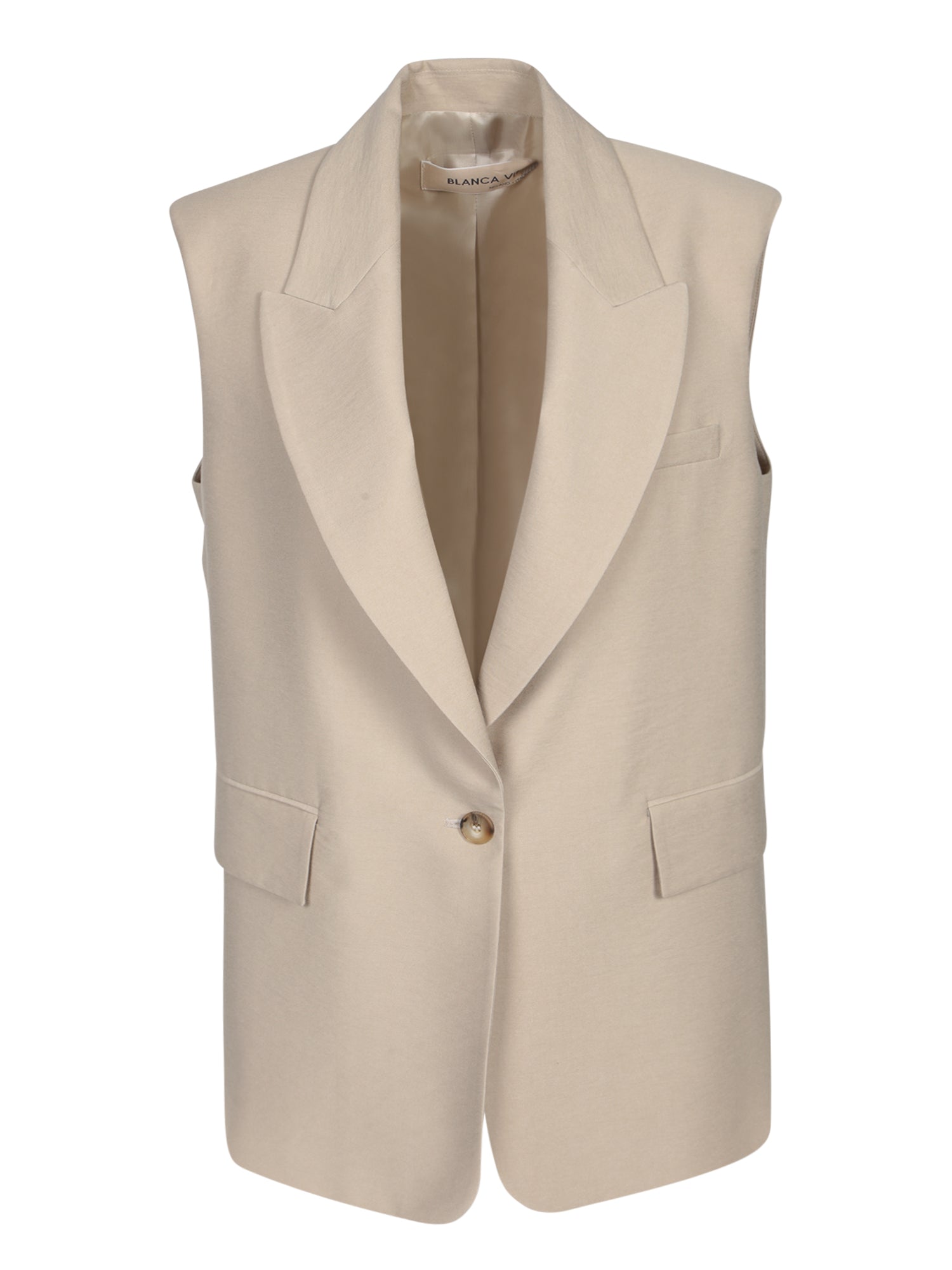 Sleeveless vest. Twill viscose fabric. Mastice color. One-button closure.