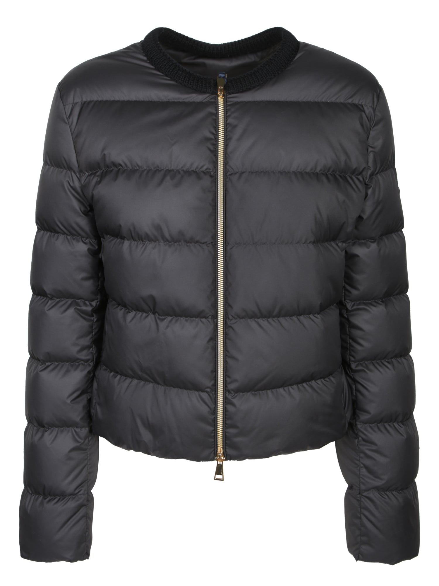 Quilted jacket with zipper closure. Ribbed high collar. Elasticated cuffs.