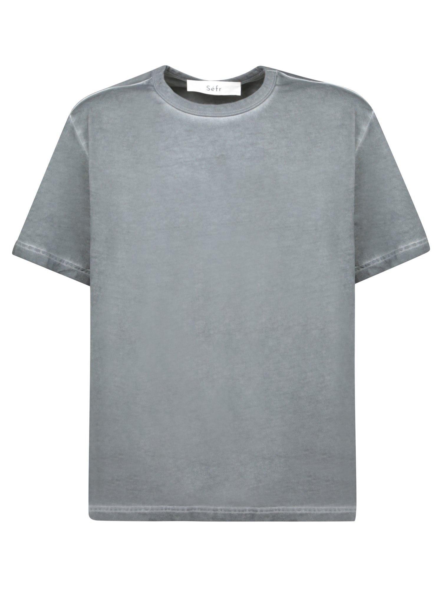 Short sleeves, crew neck, solid color design with a vintage effect.