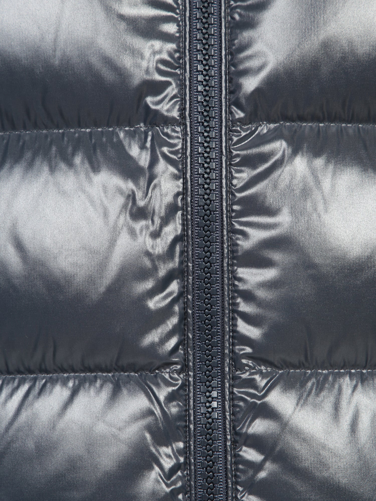The perfect balance between functionality and style, this Moncler down jacket features a glossy design with a practical removable hood and a secure zip closure for maximum winter comfort.