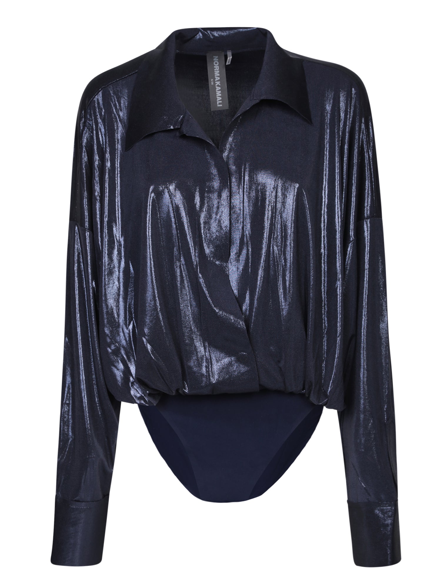 Metallic fabric shirt. Classic collar. Long sleeves with cuffs.