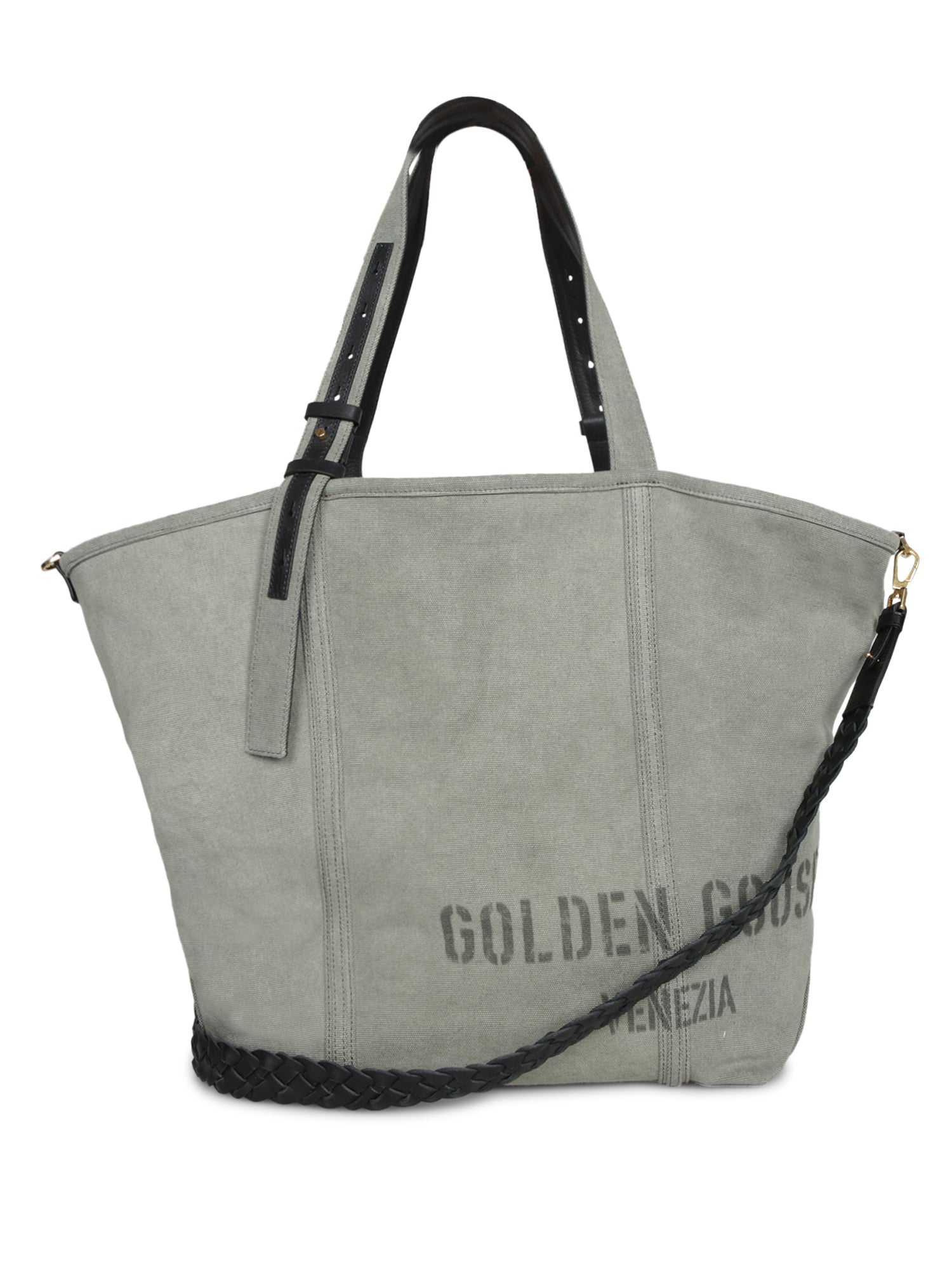 The 24.7 Shopping Bag by Golden Goose, in shades of military green, is a spacious and versatile accessory. Finished with elegant leather details and a braided shoulder strap, it stands as an ideal choice for a distinctive everyday look.