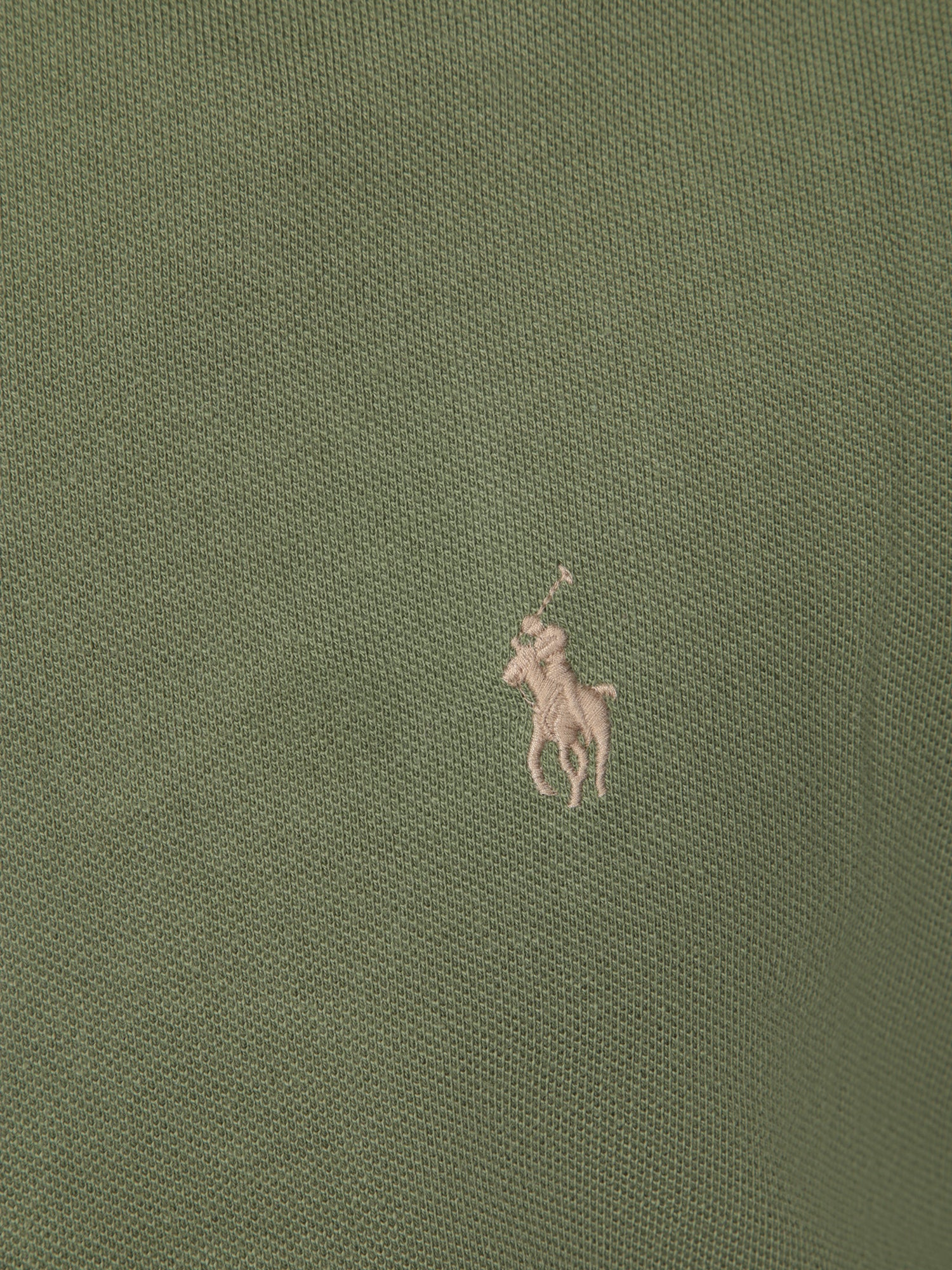 This slim fit polo by Polo Ralph Lauren is crafted in premium military green cotton piquet, enhanced with the brand's iconic embroidery on the chest.