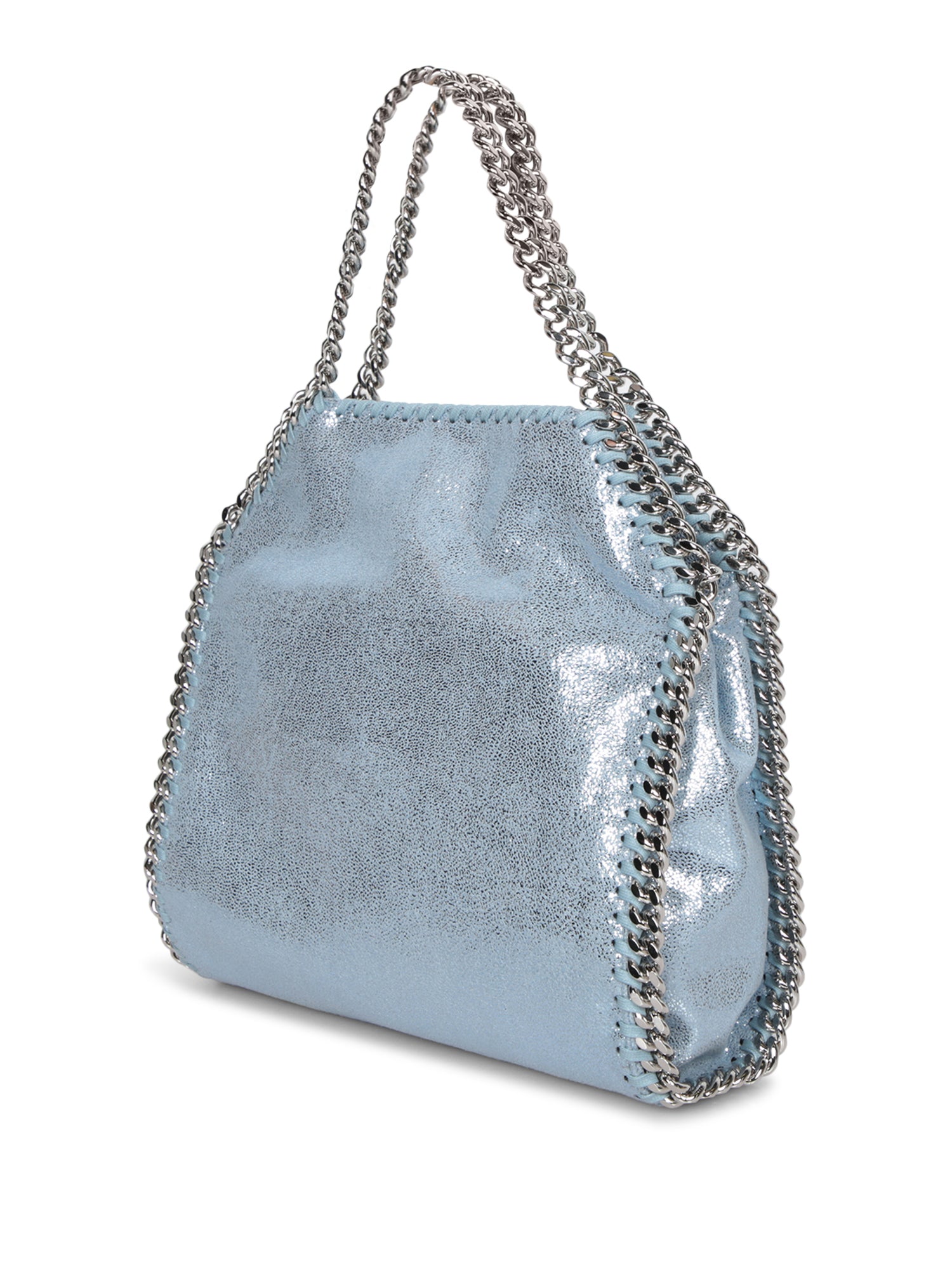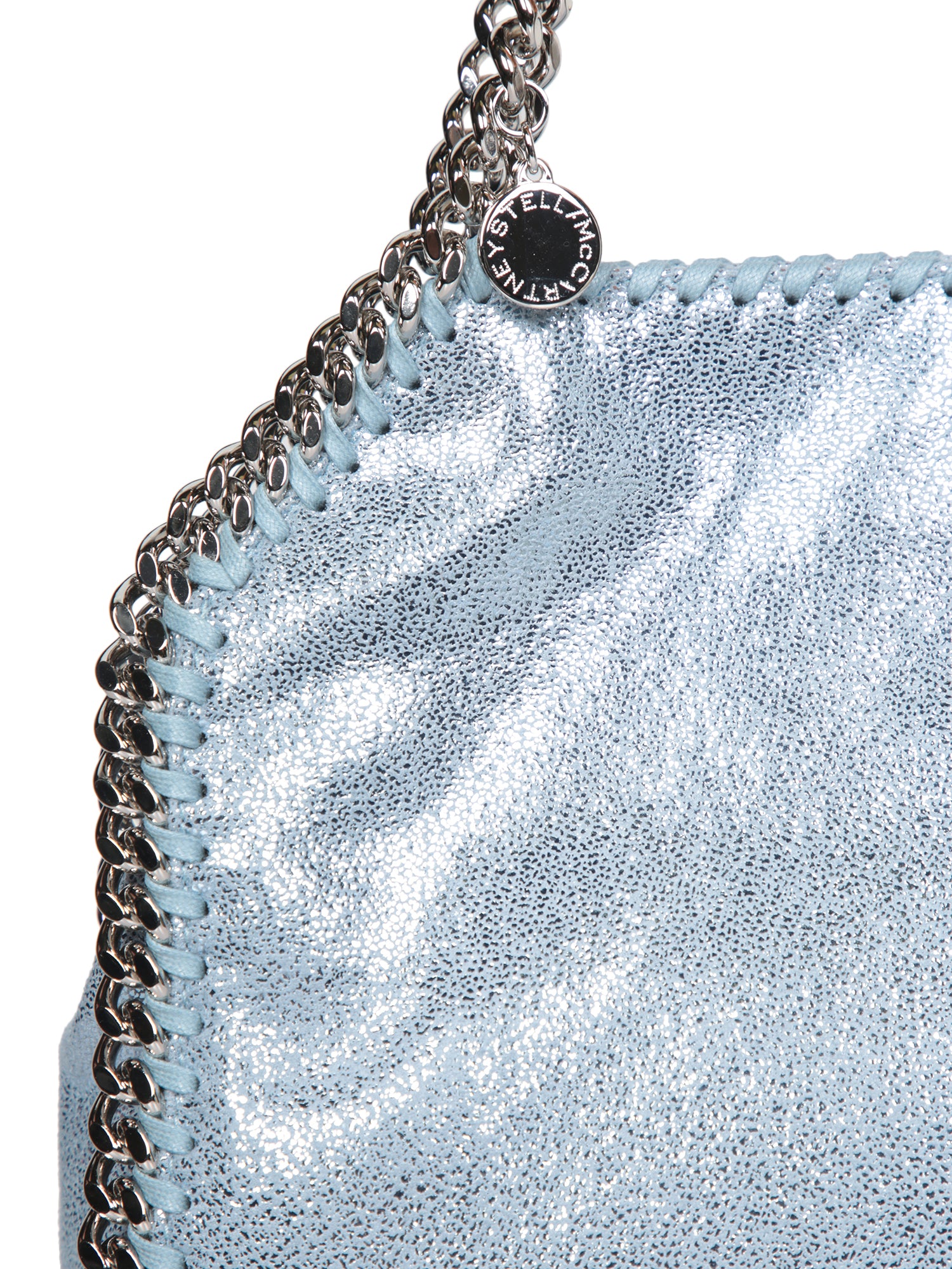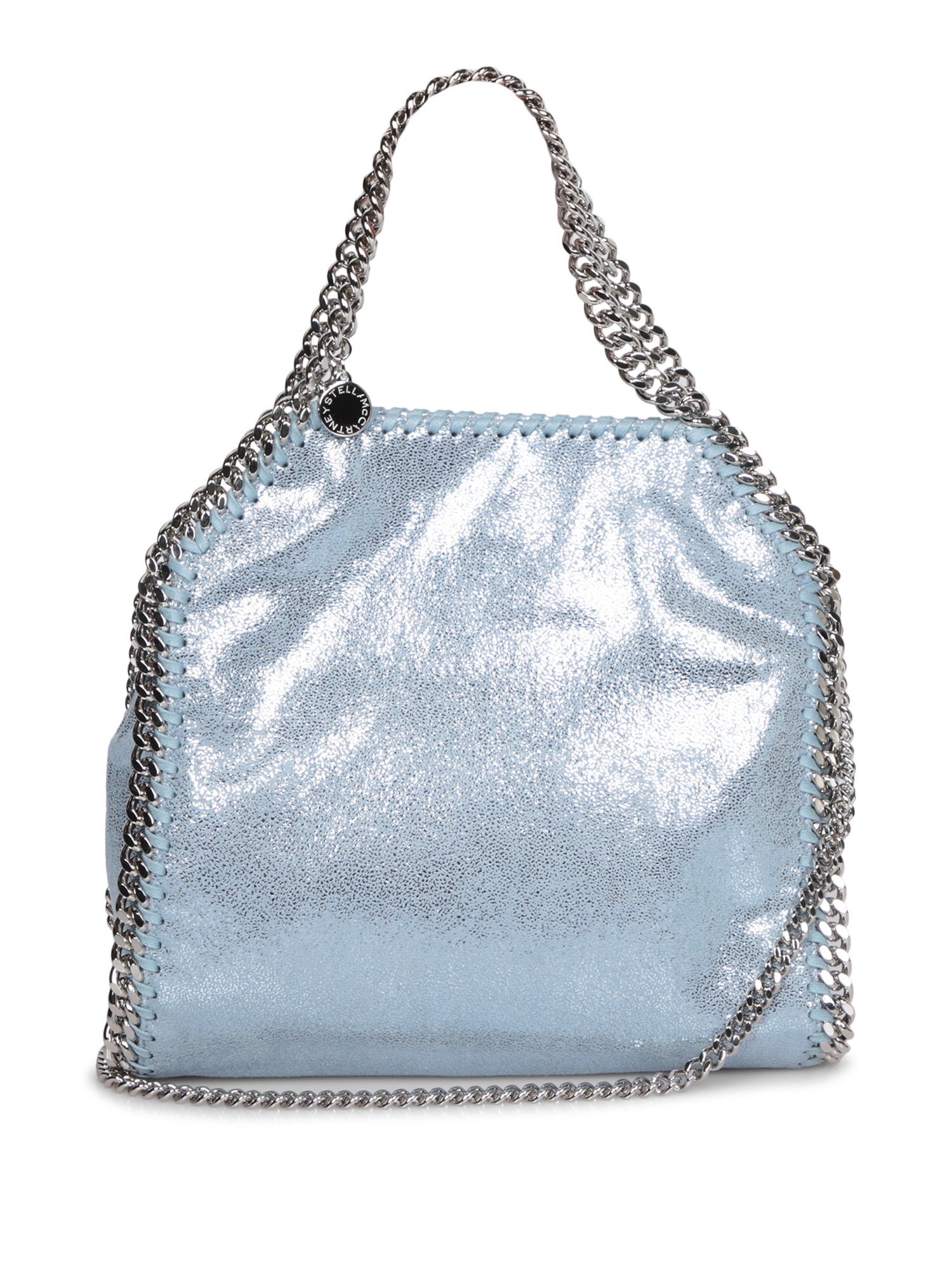 This Stella McCartney Mini Falabella bag in an eye-catching shiny blue hue is adorned with a silver chain strap that perfectly frames the design. The magnetic closure ensures security while the fabric-lined interior adds a touch of sophistication.