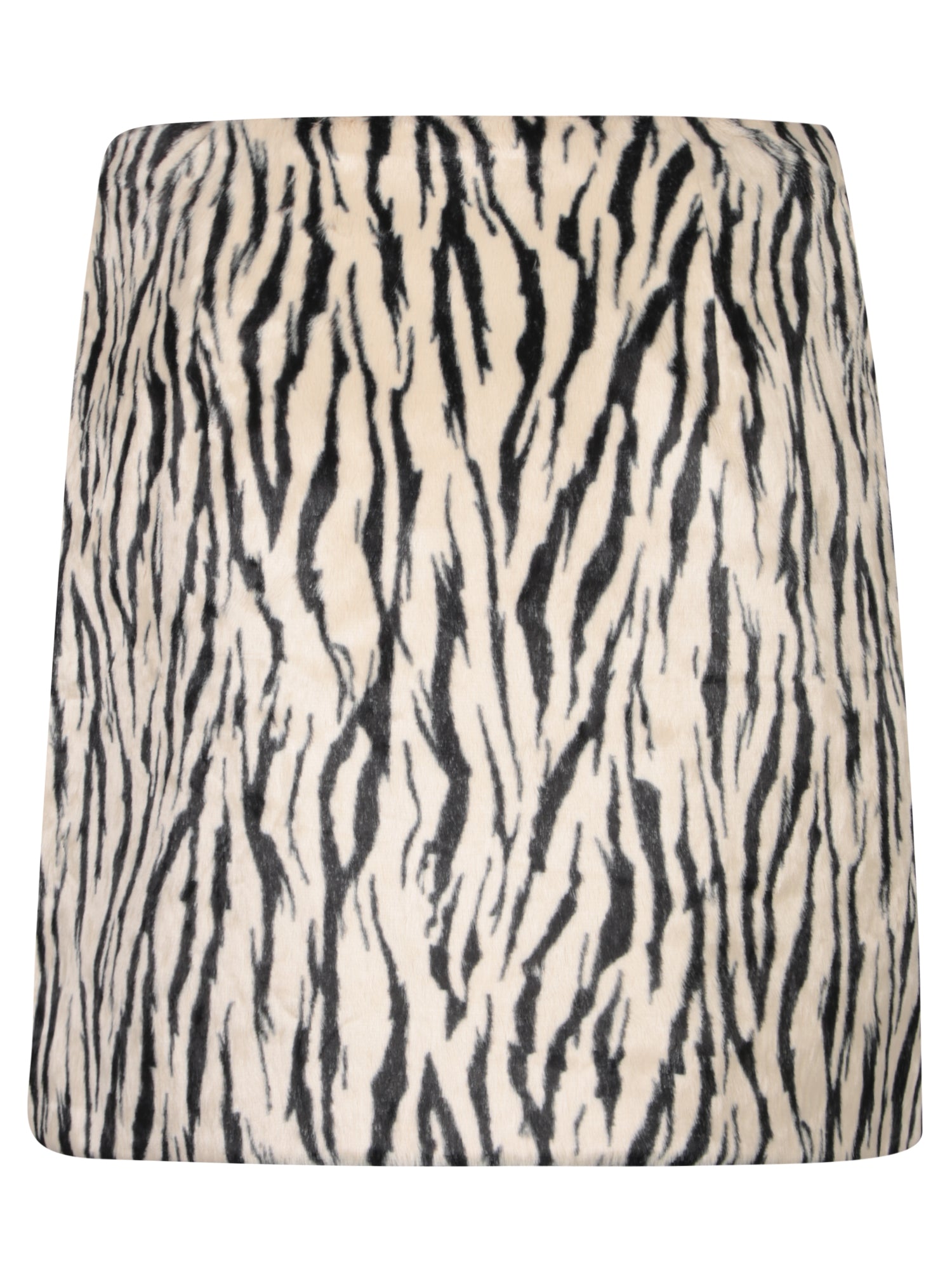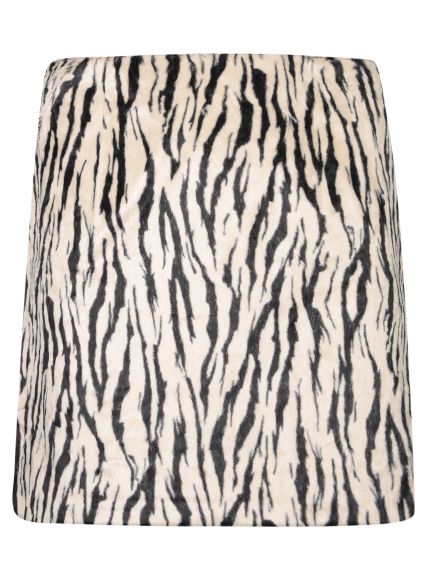 High-waisted mini skirt. Zebra pattern. Made from faux fur.