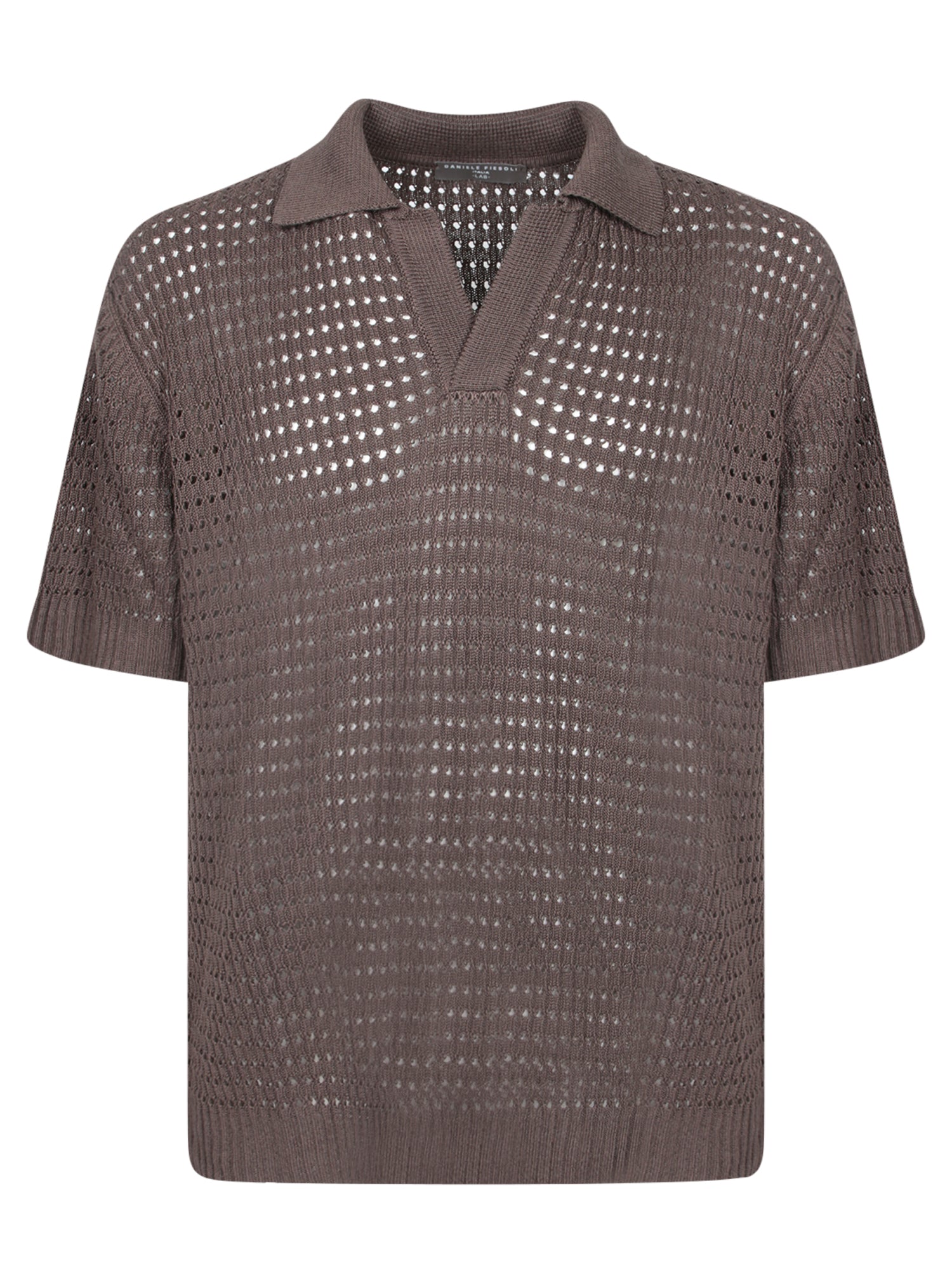 This elegant mocha Daniele Fiesoli polo is crafted from a cool linen-cotton blend, perfect for the summer season. The perforated design adds a touch of sophistication and breathability.