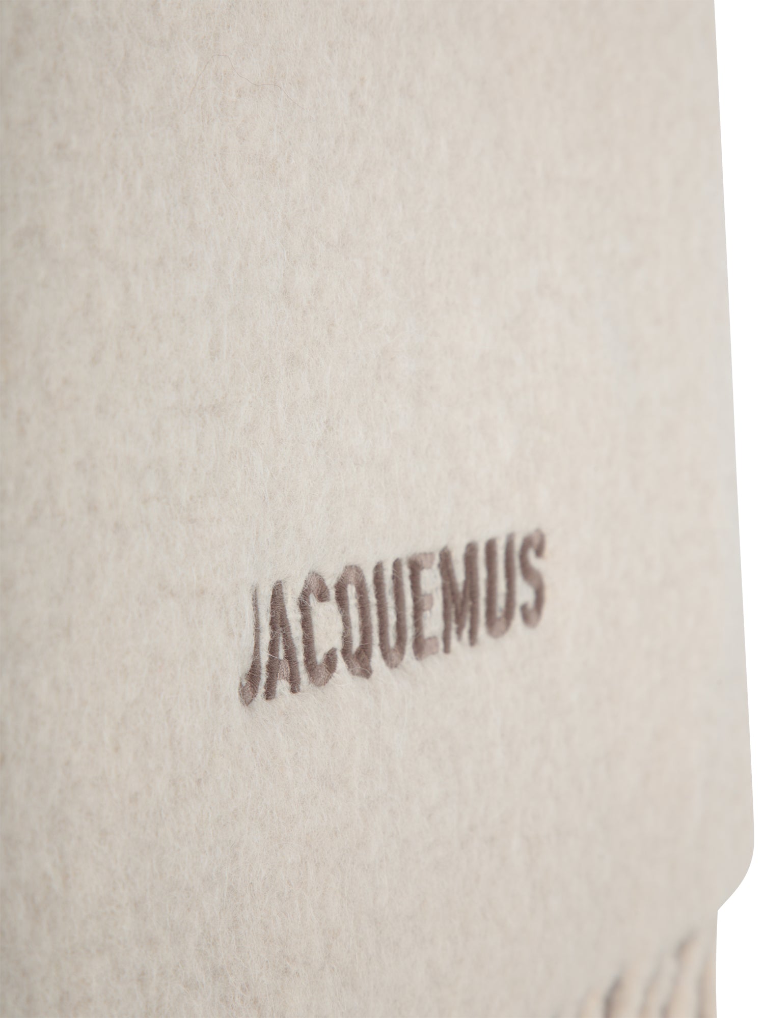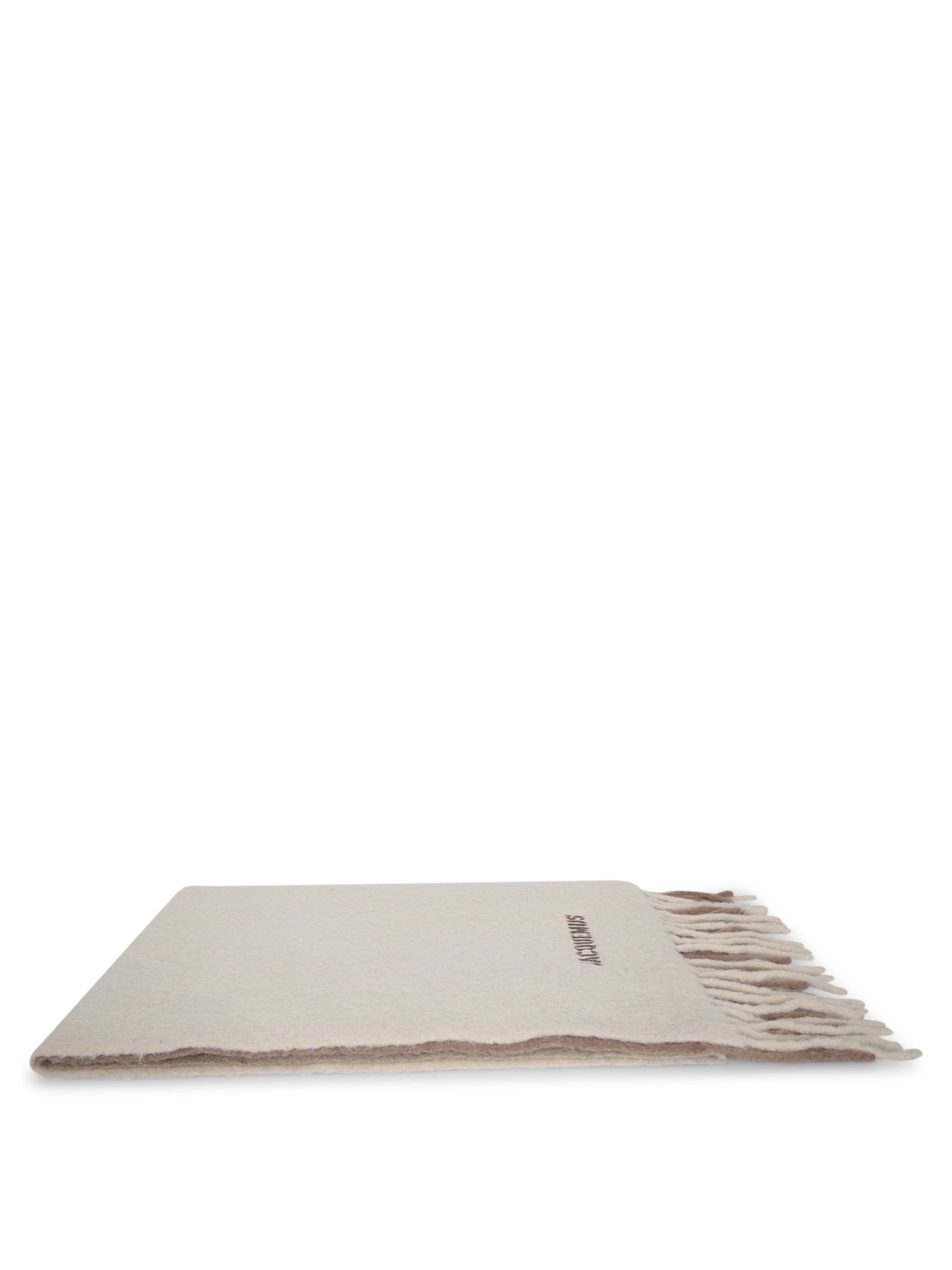 Beige mixed wool scarf. Fringed ends. Subtle black logo.