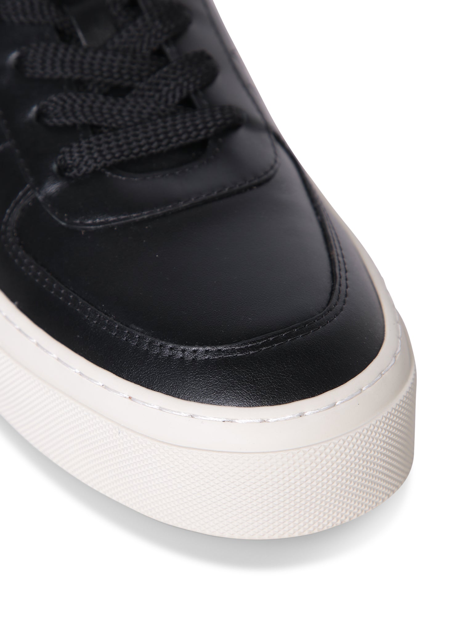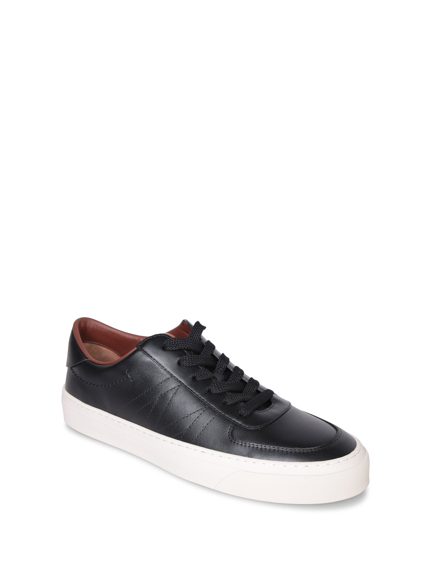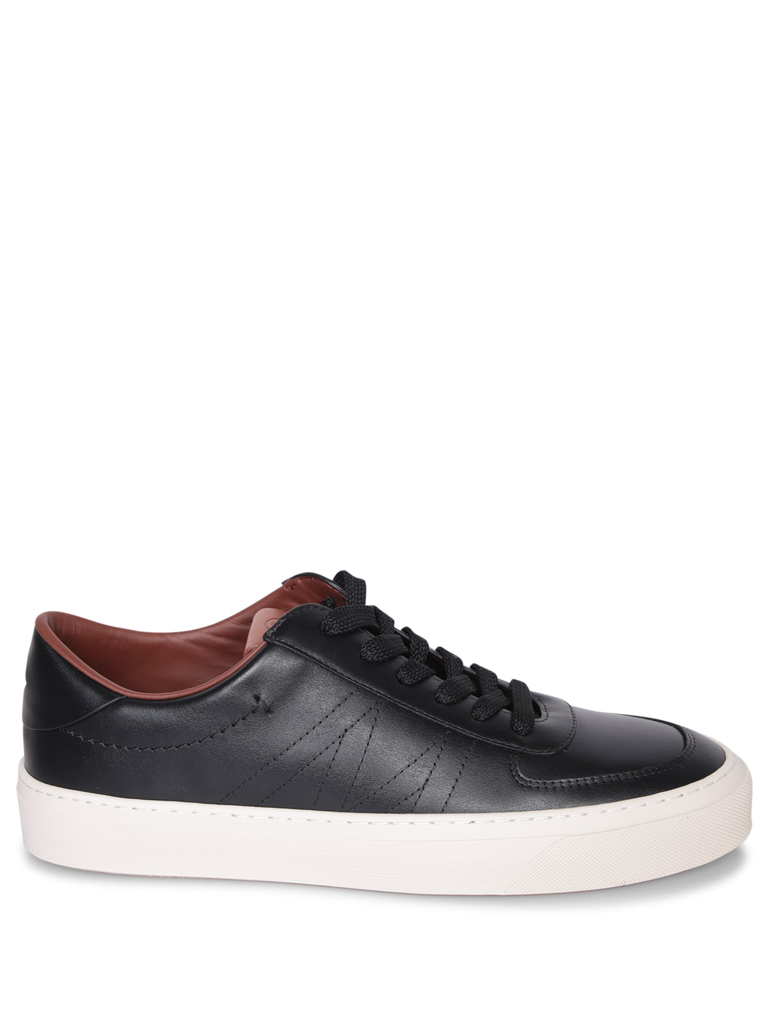 Low-top sneakers in smooth leather. Brown leather interior. White rubber sole.