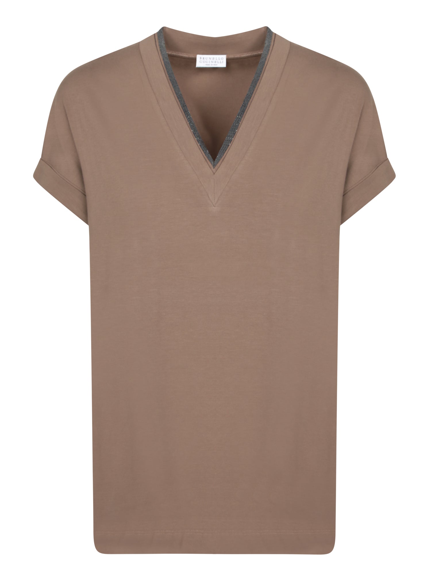 V-neck with Monile detail. Short sleeves. Regular fit.