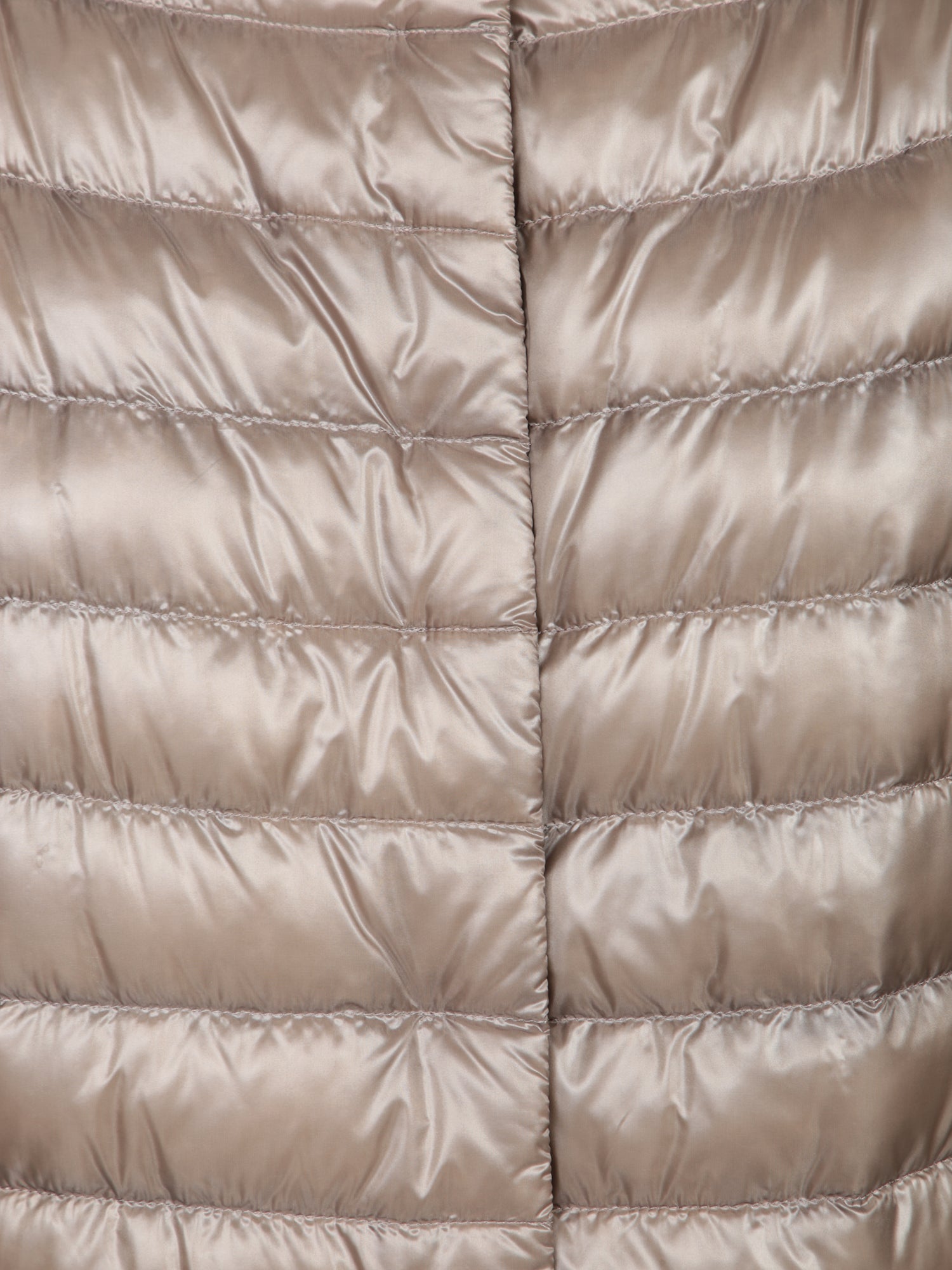 Quilted ultralight nylon jacket with monogram pattern. Front zip closure. Taupe color.
