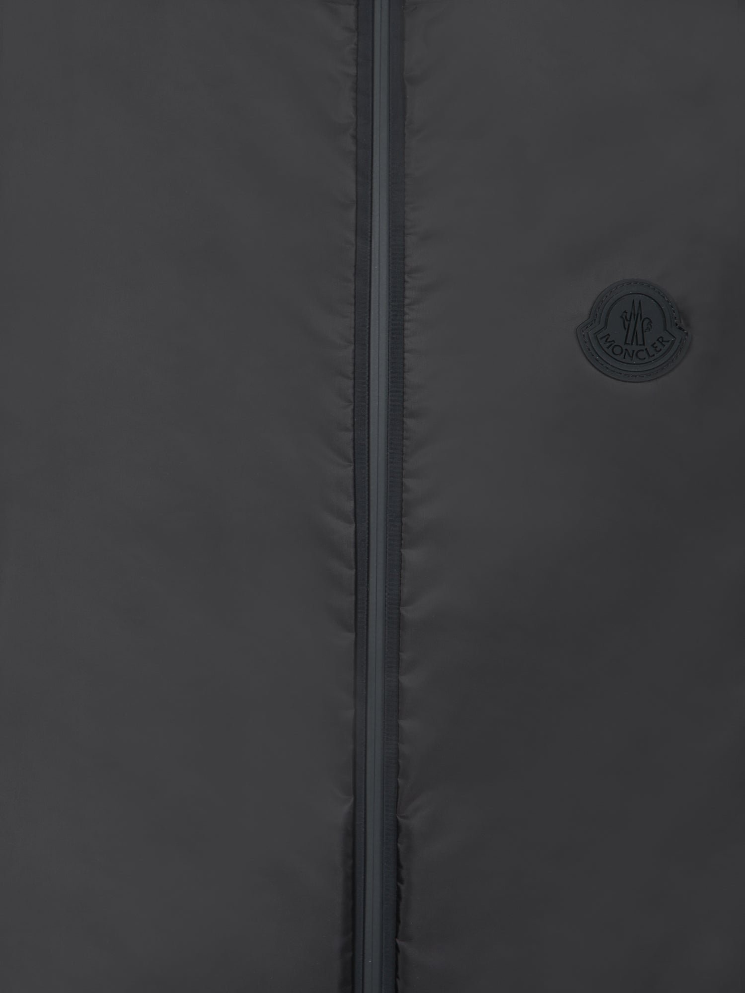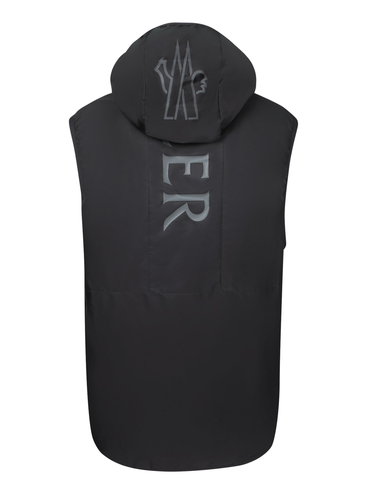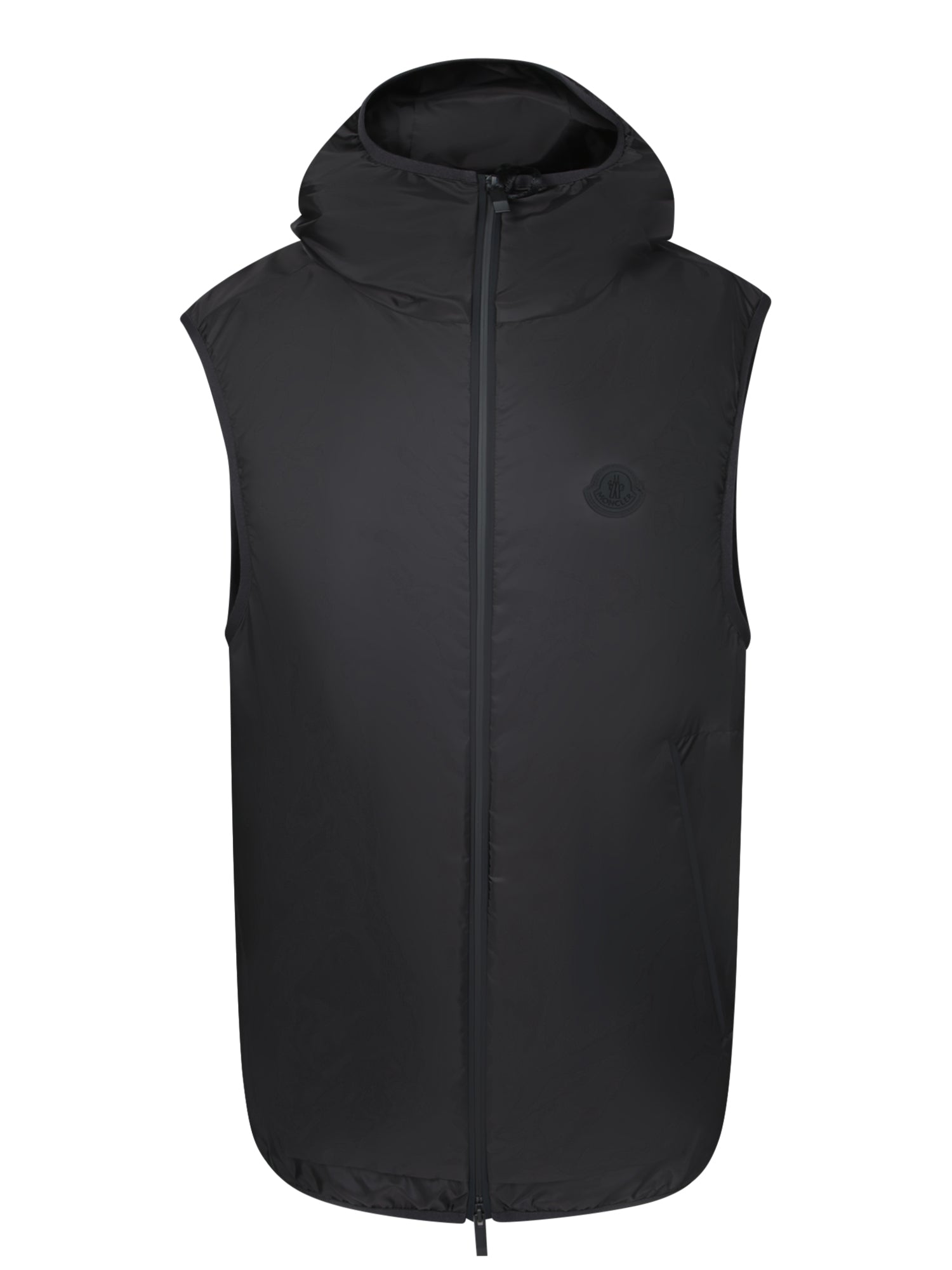 Crafted from durable technical fabric, this black Moncler gilet blends functionality with urban style. Featuring a spacious hood and practical zip closure, it's perfect for delivering a casual yet sophisticated look in any season.