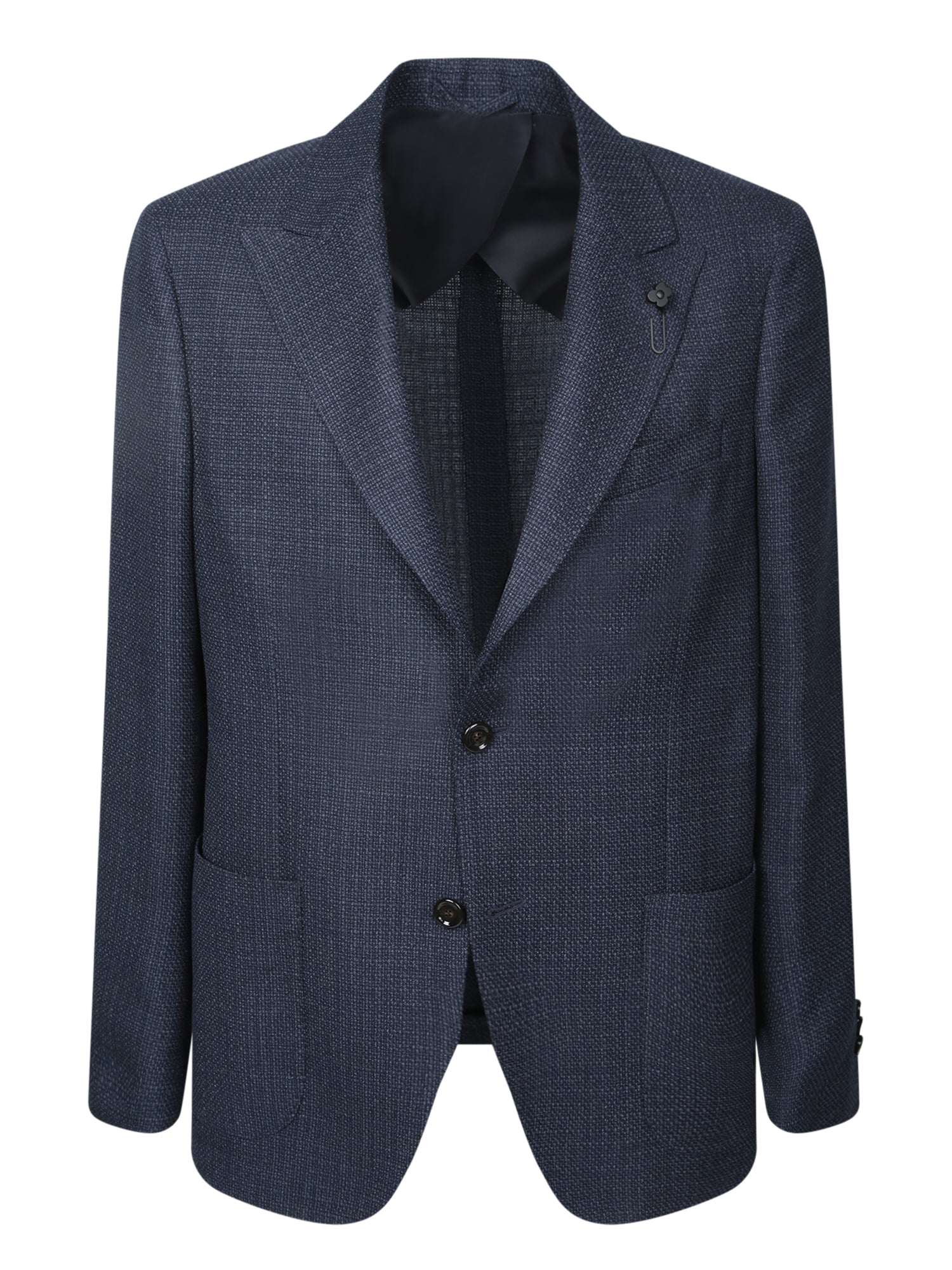 This elegant Lardini jacket is crafted in premium blue mouliné wool, offering a classic yet contemporary silhouette, enhanced by a refined textile pattern that adds a touch of distinctiveness.