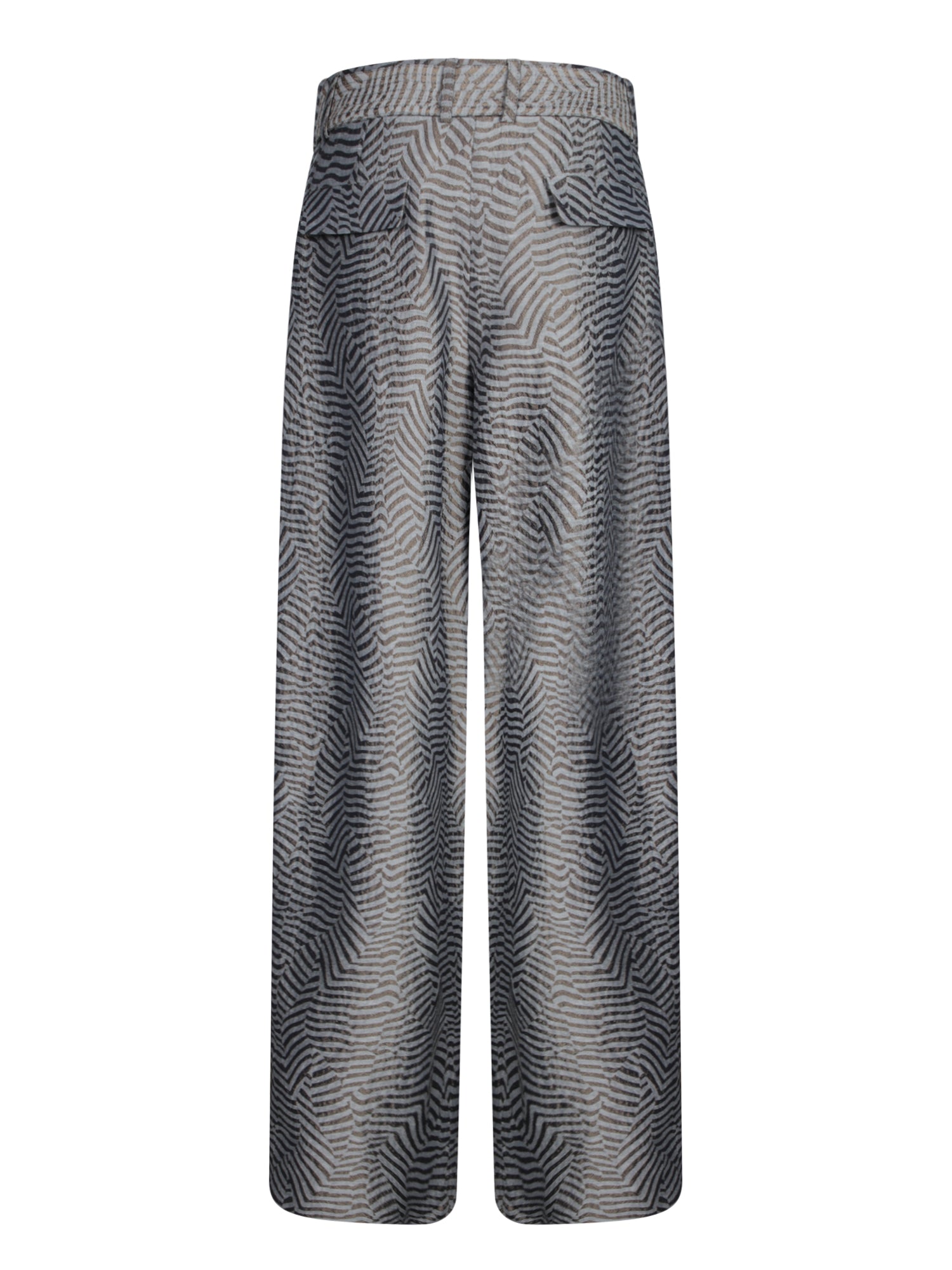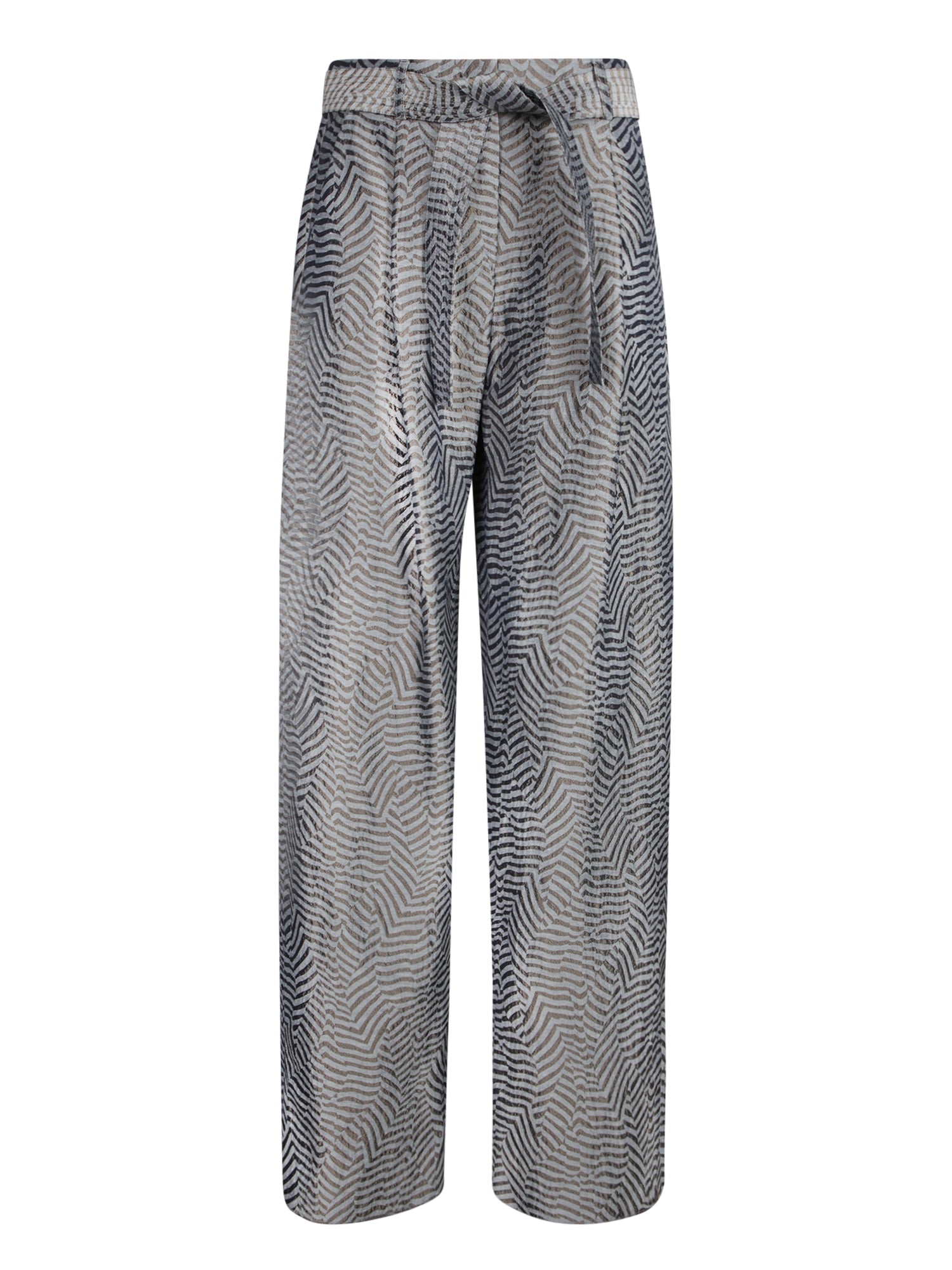 Wide-leg trousers in jacquard fabric. Geometric design. High waist with belt.