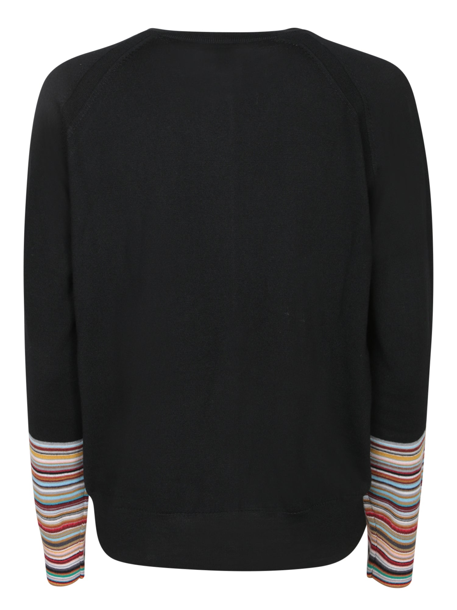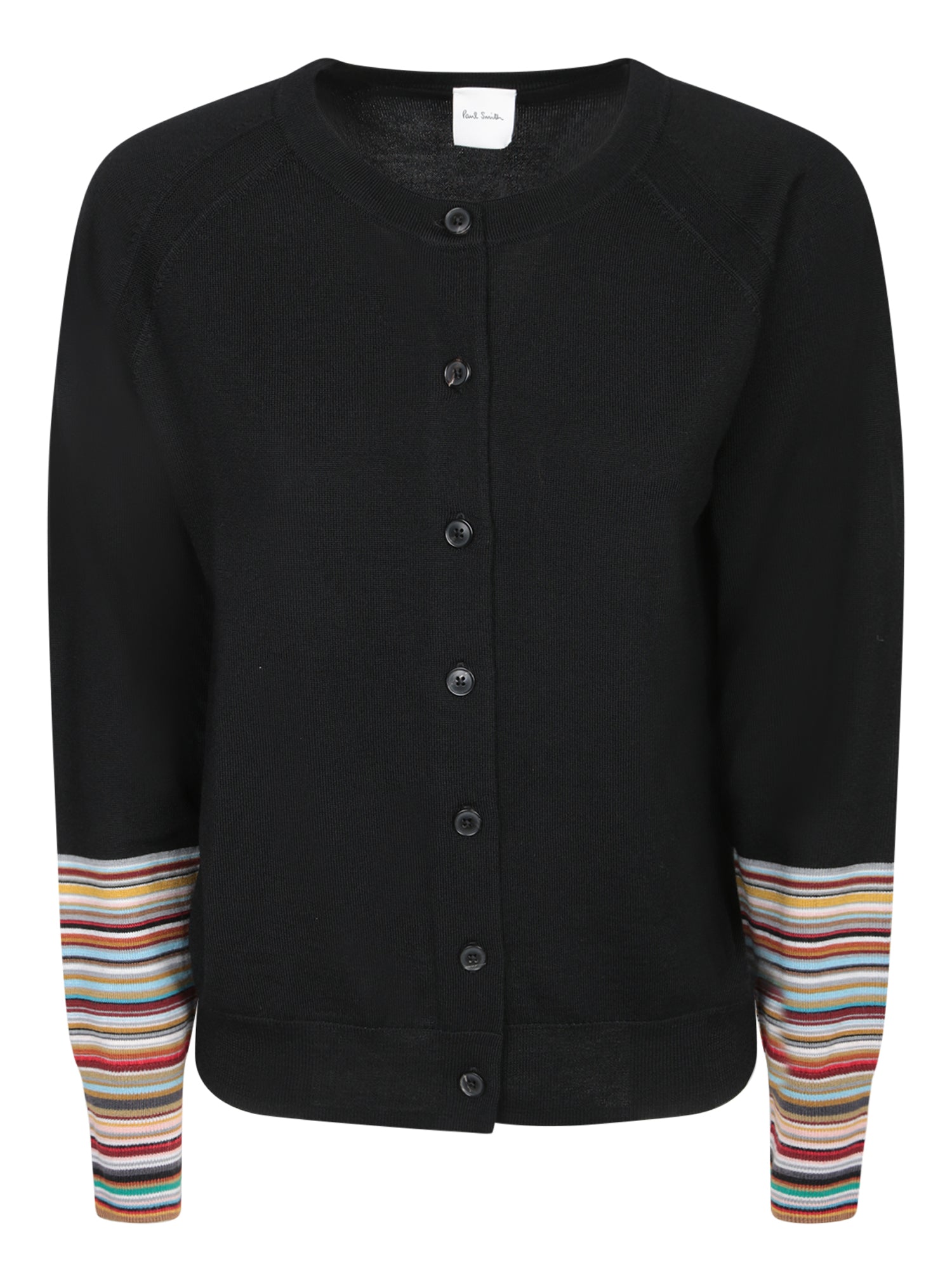 Exclusive Paul Smith cardigan that blends elegance and comfort. The refined knit craftsmanship pairs perfectly with the vibrant multicolor stripes on the sleeves, ideal for a sophisticated yet playful look.