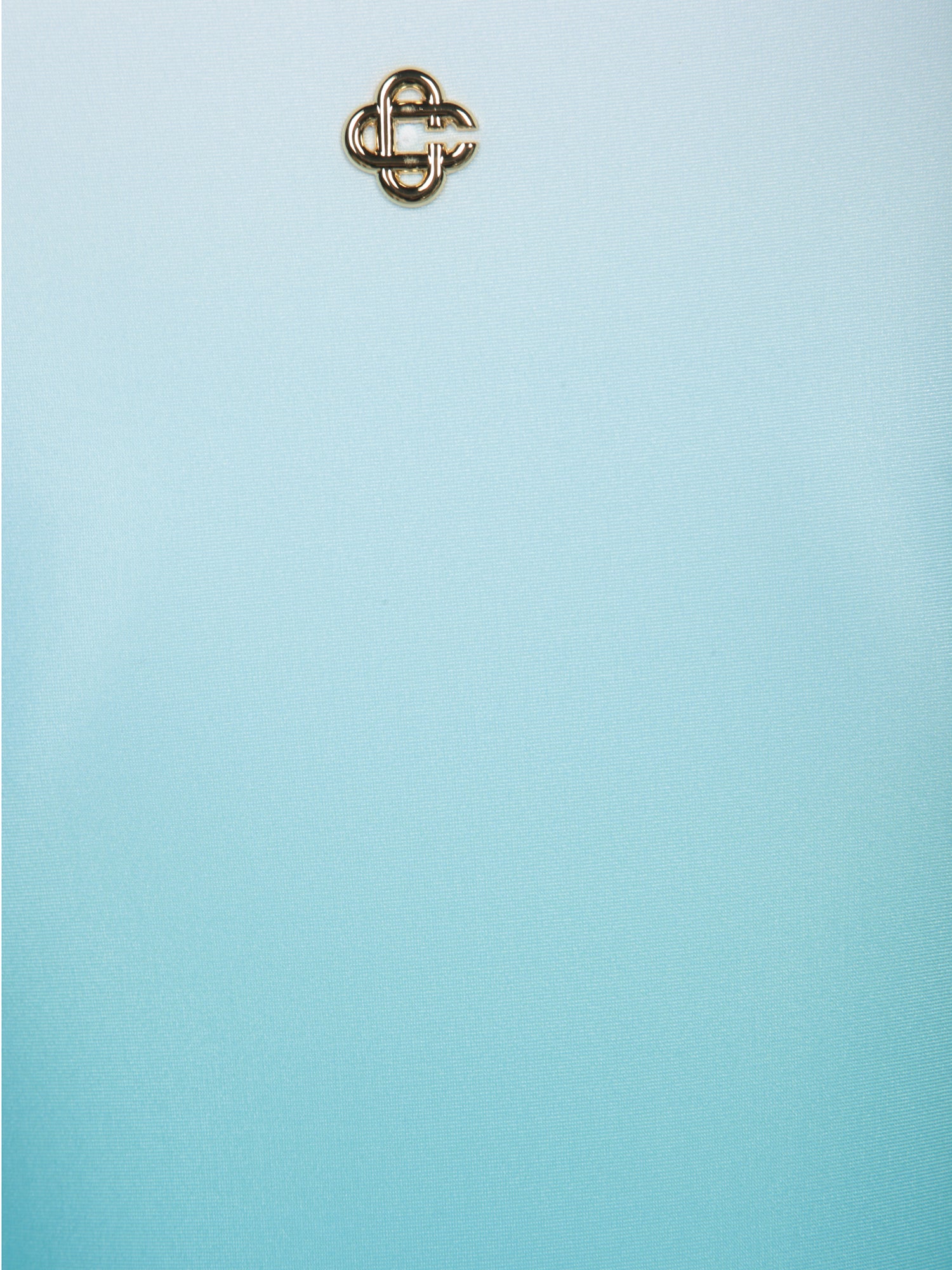This elegant Casablanca one-piece swimsuit features a vivid multicolor gradient that fades from orange to blue. Perfect for a distinctive beach look, it is finished with a small metallic logo at the front.