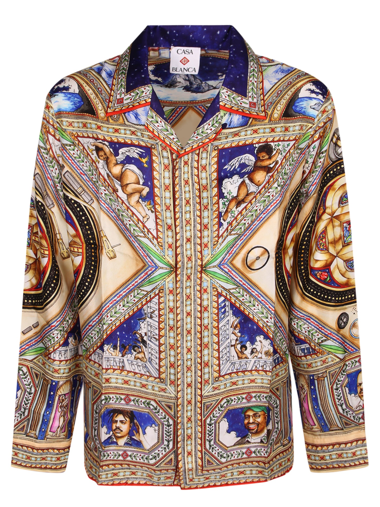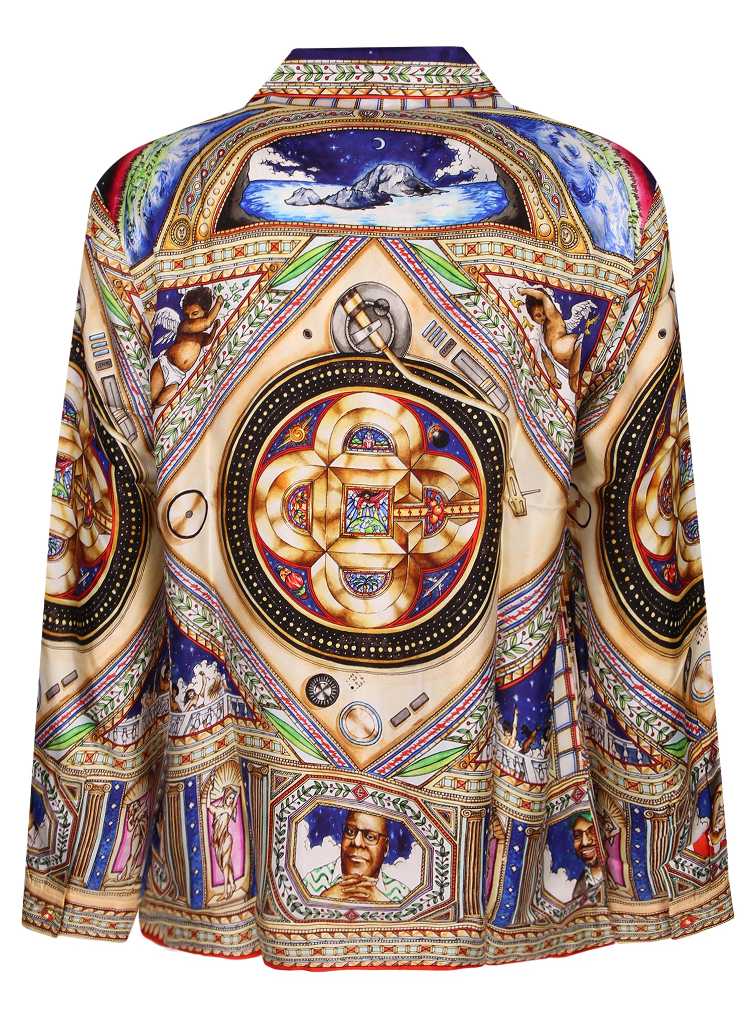 Smooth silk. Regular fit. Baroque design. Detailed print. Button closure.
