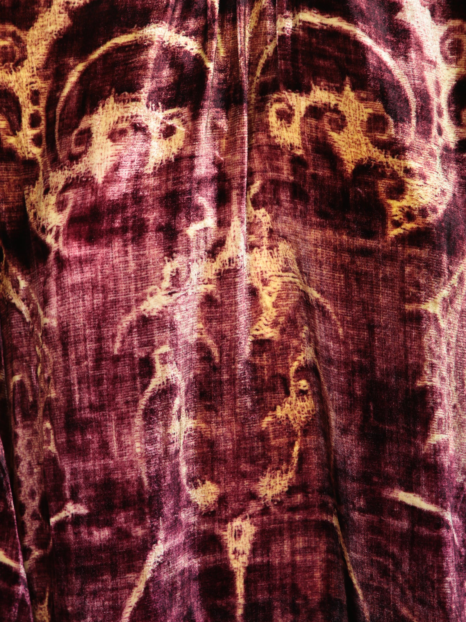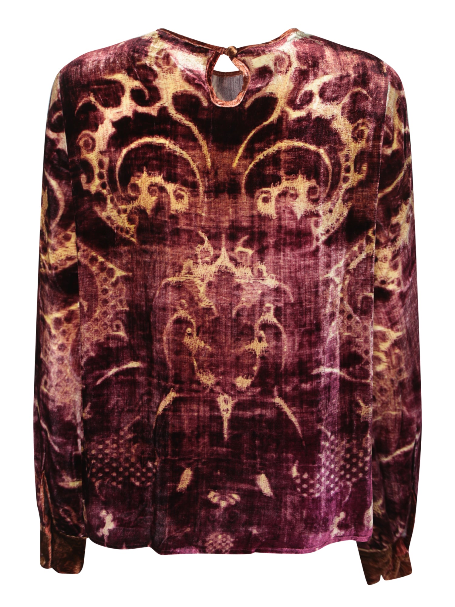 Long sleeve blouse. Multicolored printed velvet fabric. Contrasting cuffs.