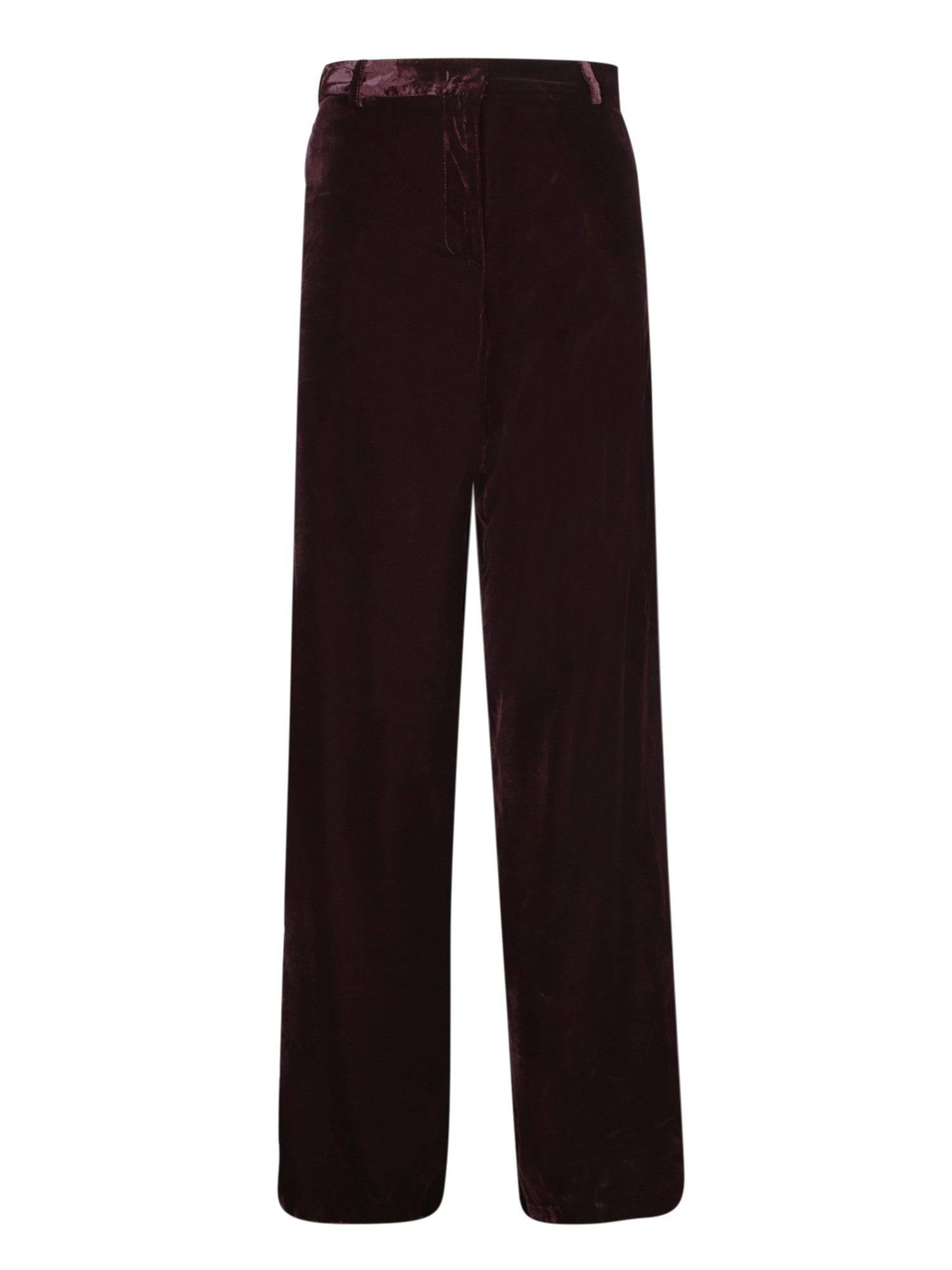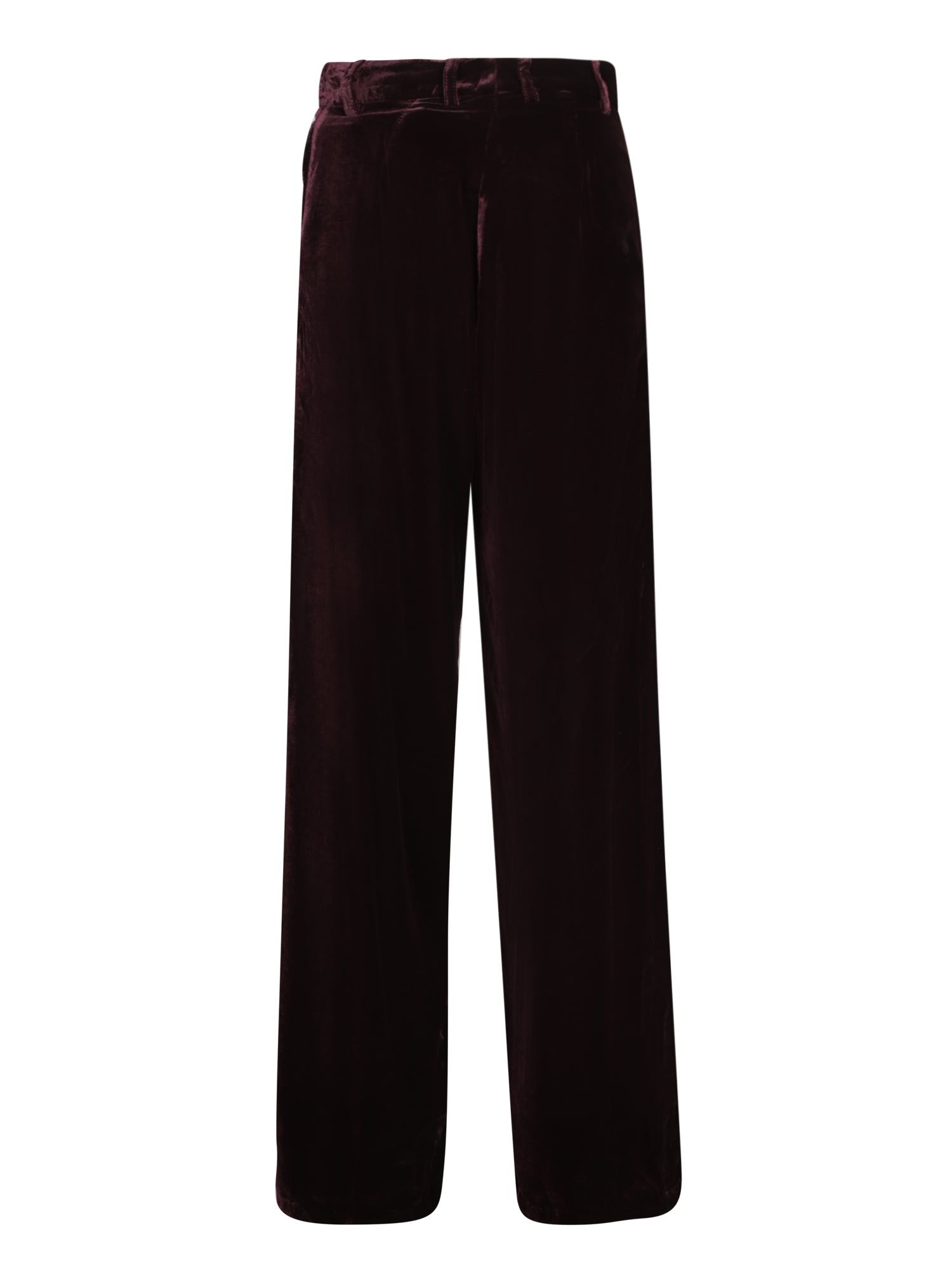 Wide palazzo cut. Smooth velvet. High waist with belt.