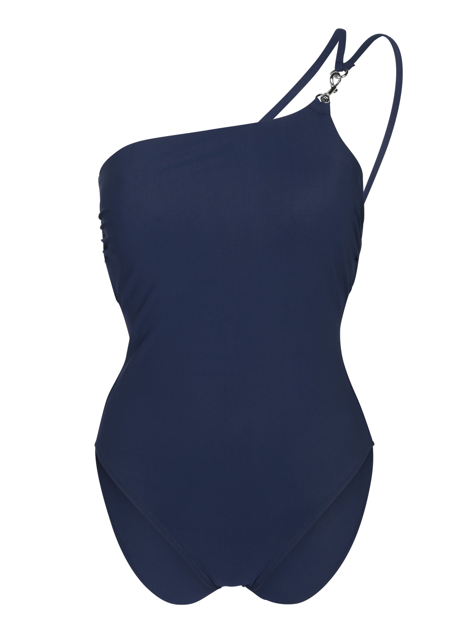 Explore understated elegance with the Tory Burch Navy Blue Bodysuit, featuring a minimalistic cut and refined metallic details. Perfect for a sophisticated look, both on the beach and in the city.