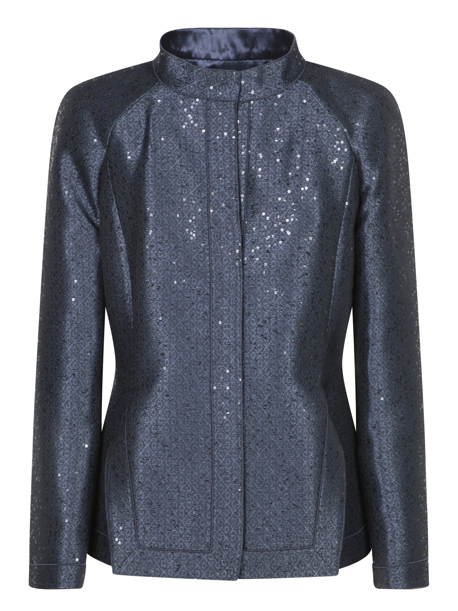 Jacket in jacquard fabric. Sequin detailing. Mandarin collar.