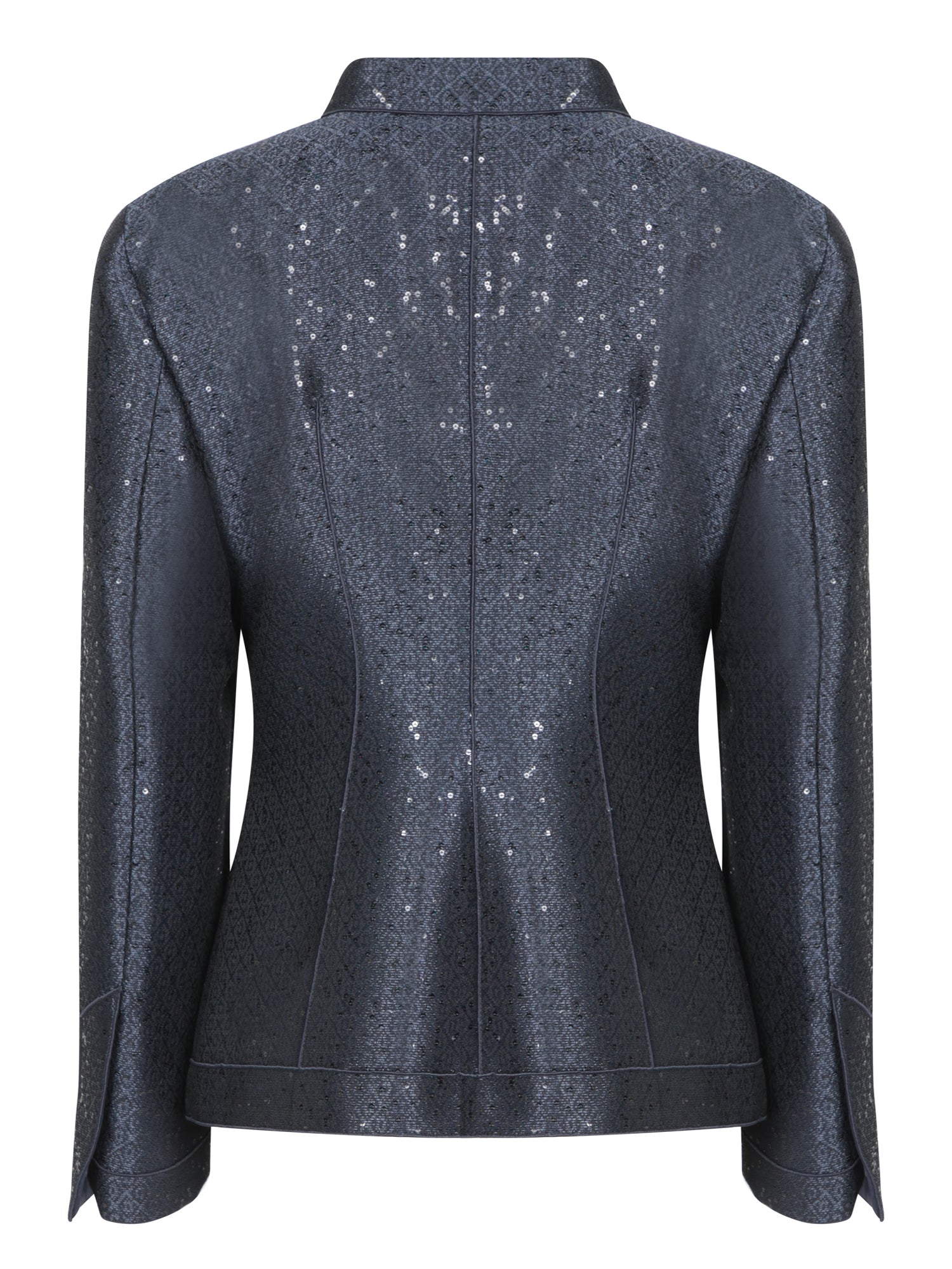 Navy Blue Jacquard Jacket with Sequins