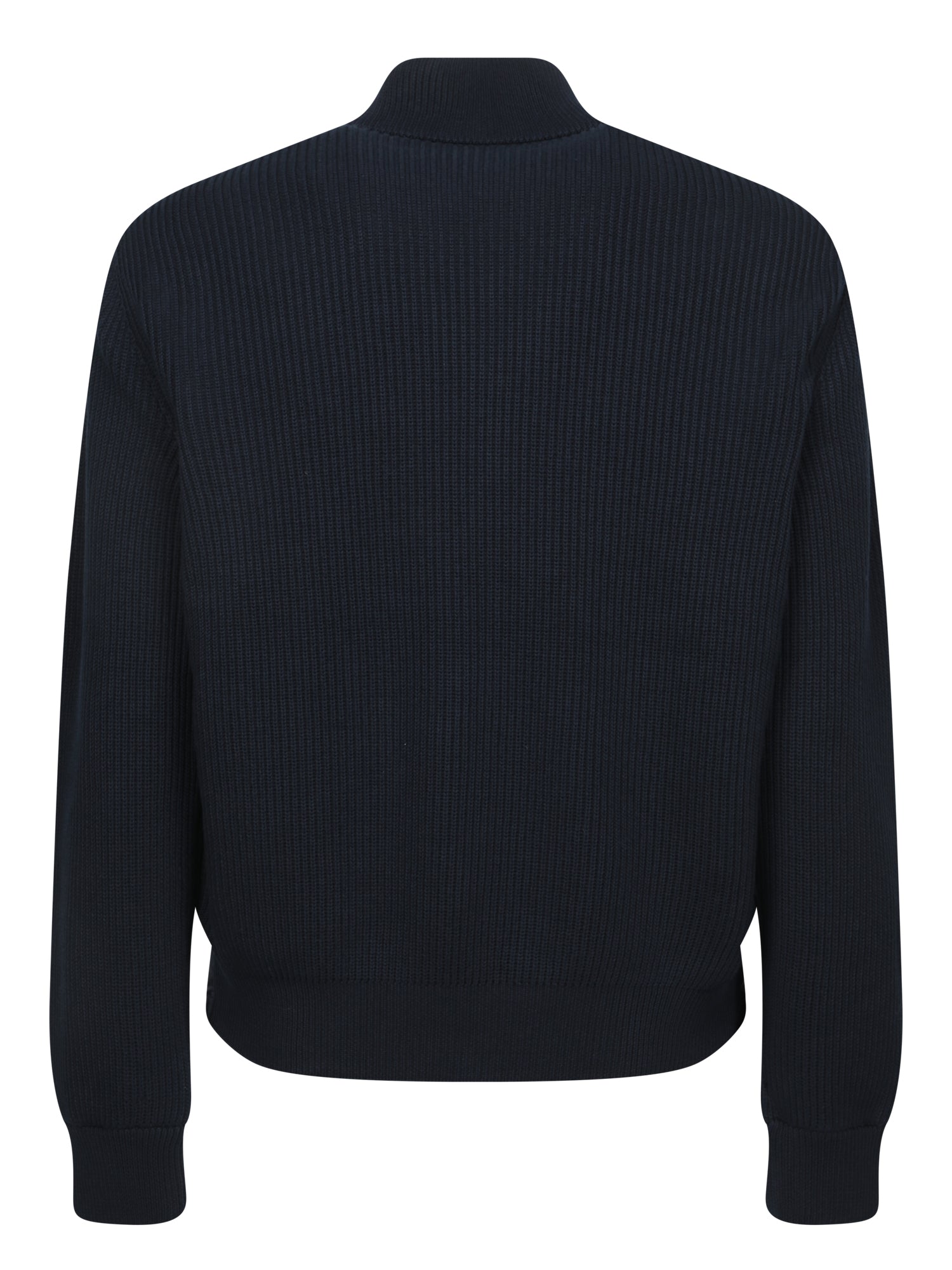 Zip-up cardigan, long sleeves, mandarin collar, ribbed detailing.