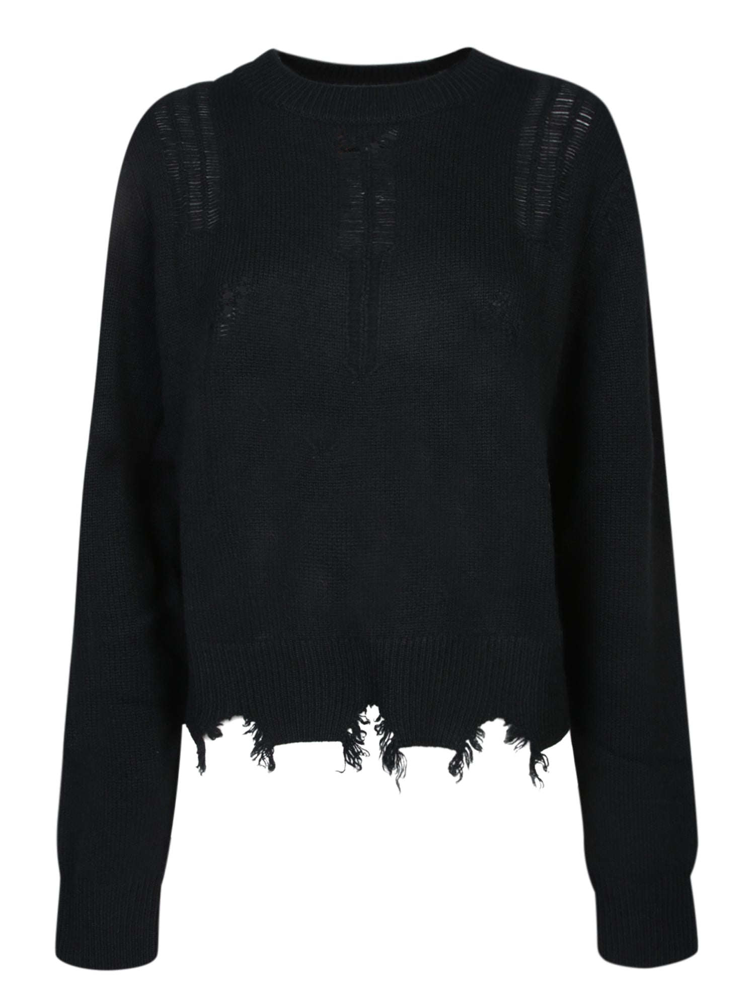 Exclusive Kujten black knit sweater featuring destroyed finishes that add a modern and edgy touch. Perfect for a sophisticated urban look.