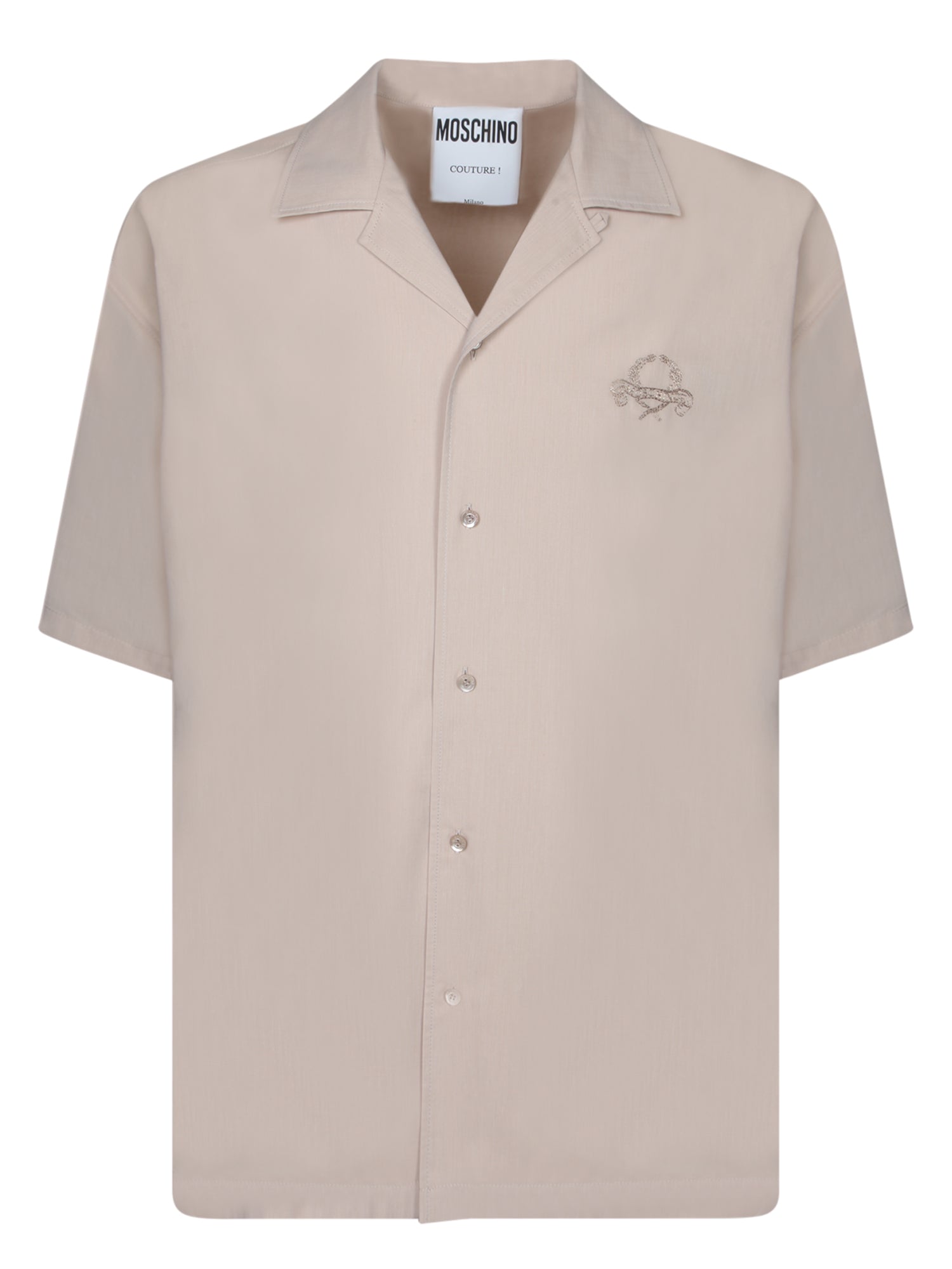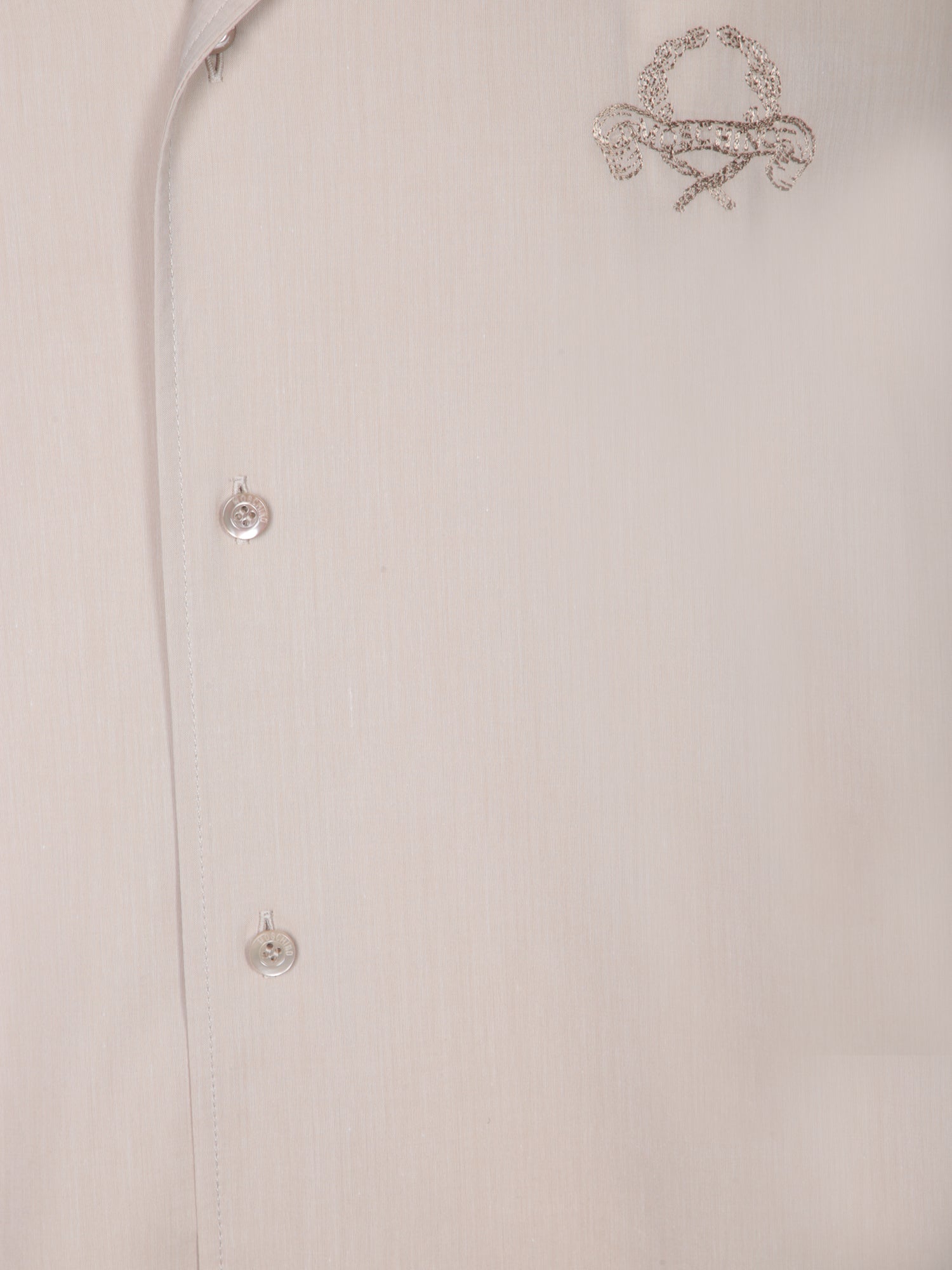 This elegant beige Moschino shirt flaunts a minimalist design with a touch of class through the embroidered logo on the chest, making it ideal for both formal and casual occasions.
