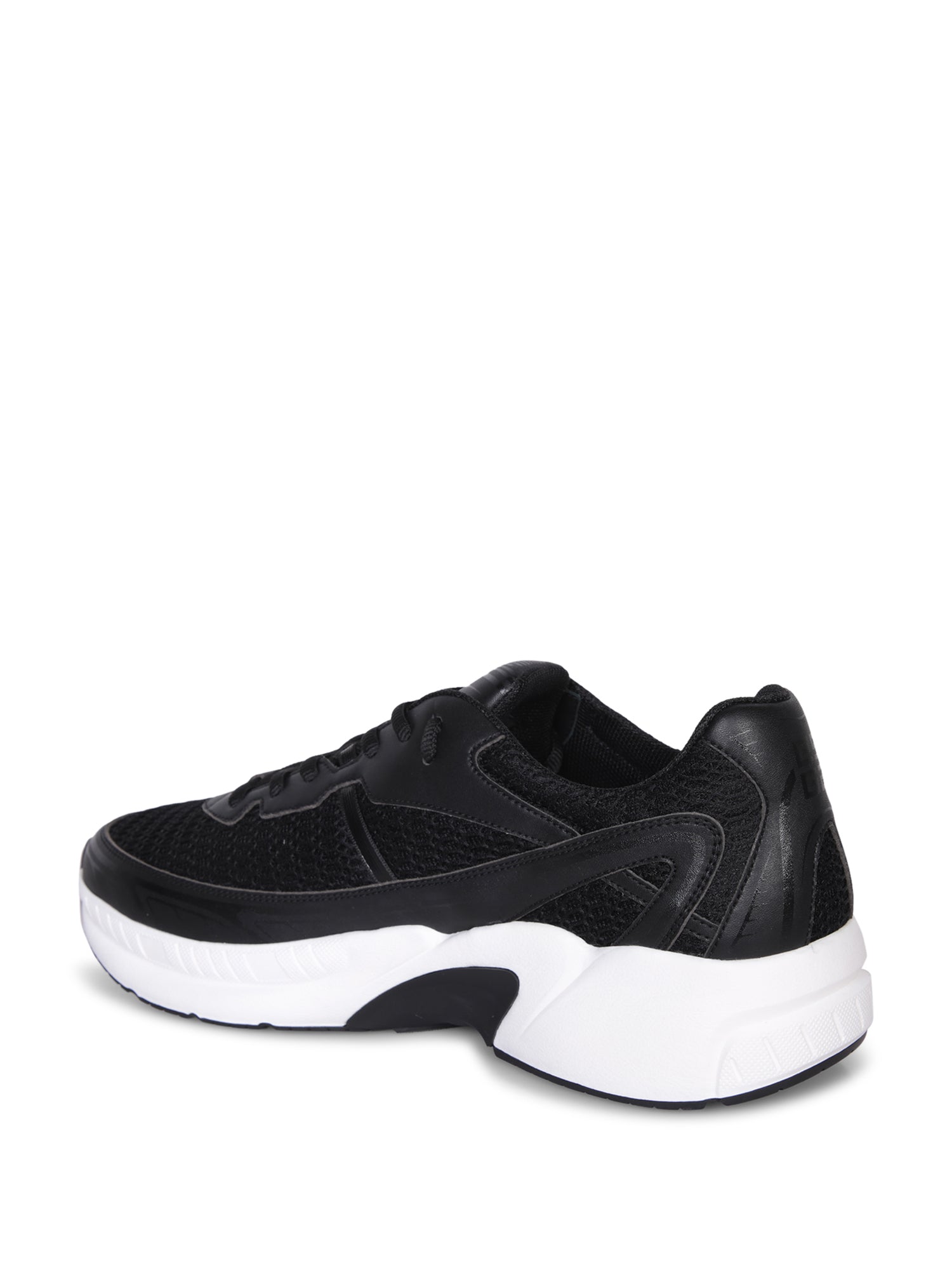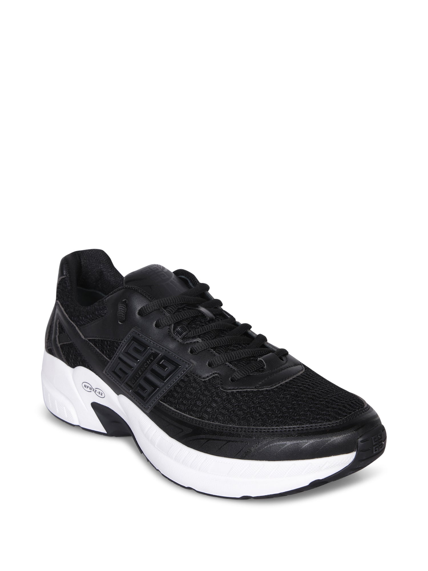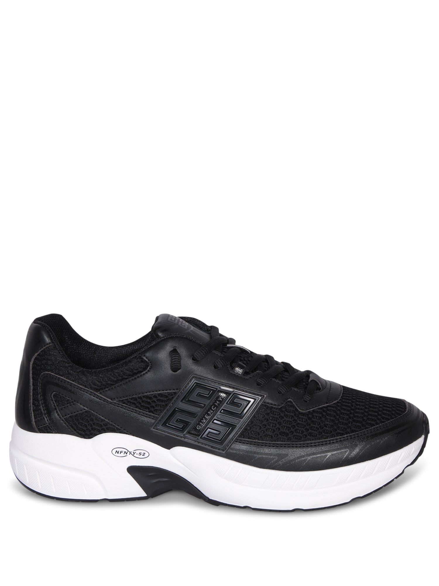 Contemporary design. Technical fabric upper with leather trim. Thick rubber sole.