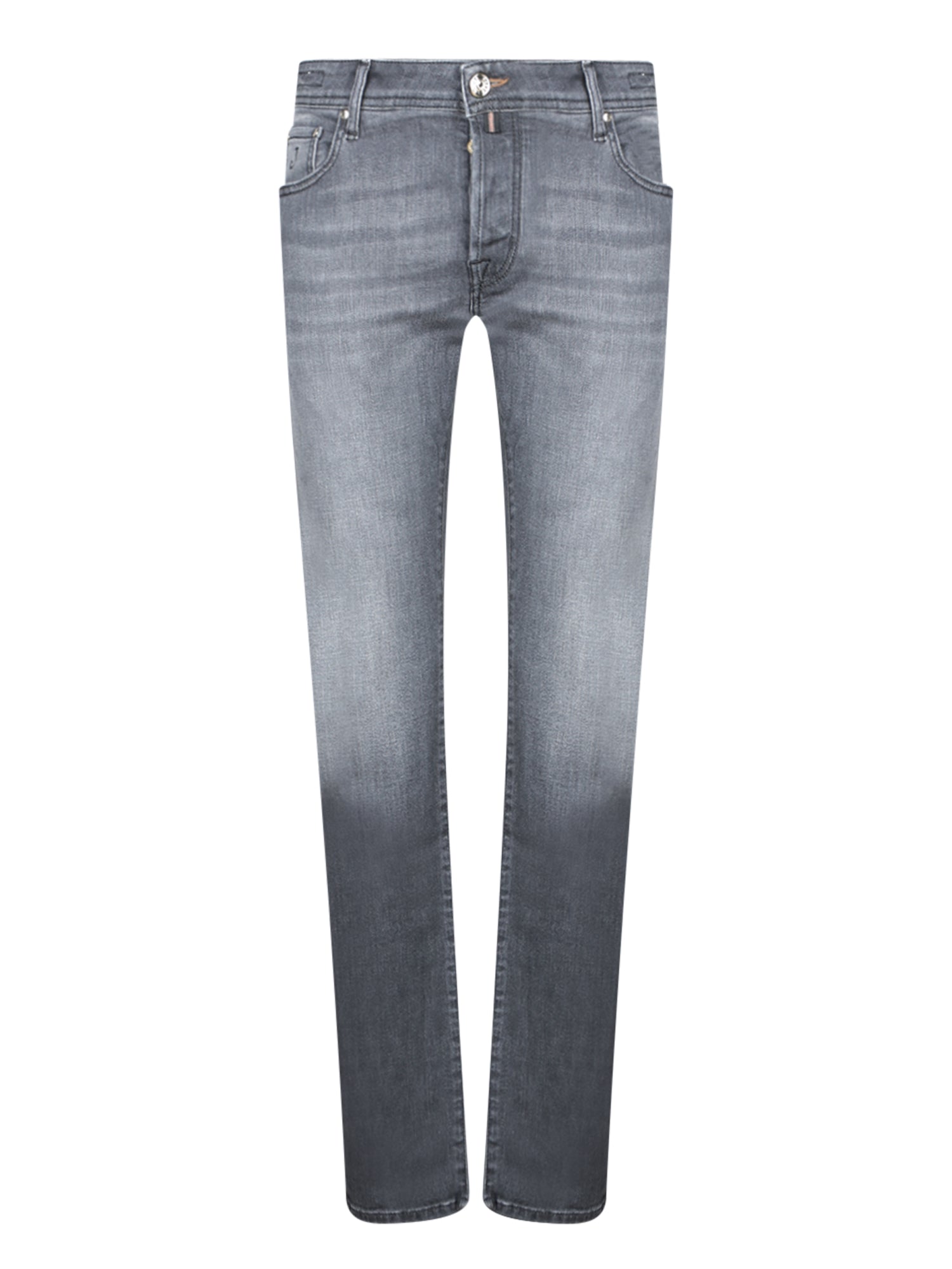 Slim fit jeans with high-quality denim fabric. Front button and zip closure. Five-pocket style.
