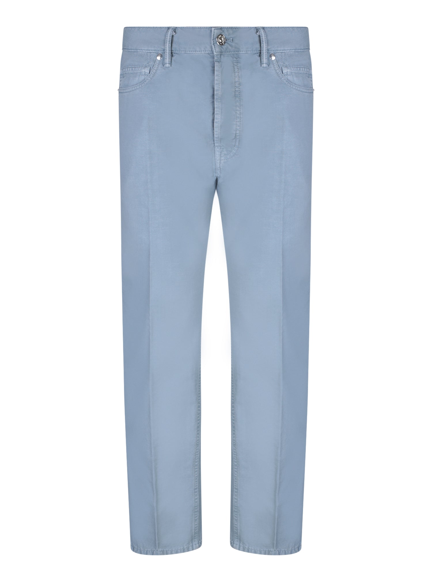 Cotton denim jeans, regular fit, button closure, five-pocket design.