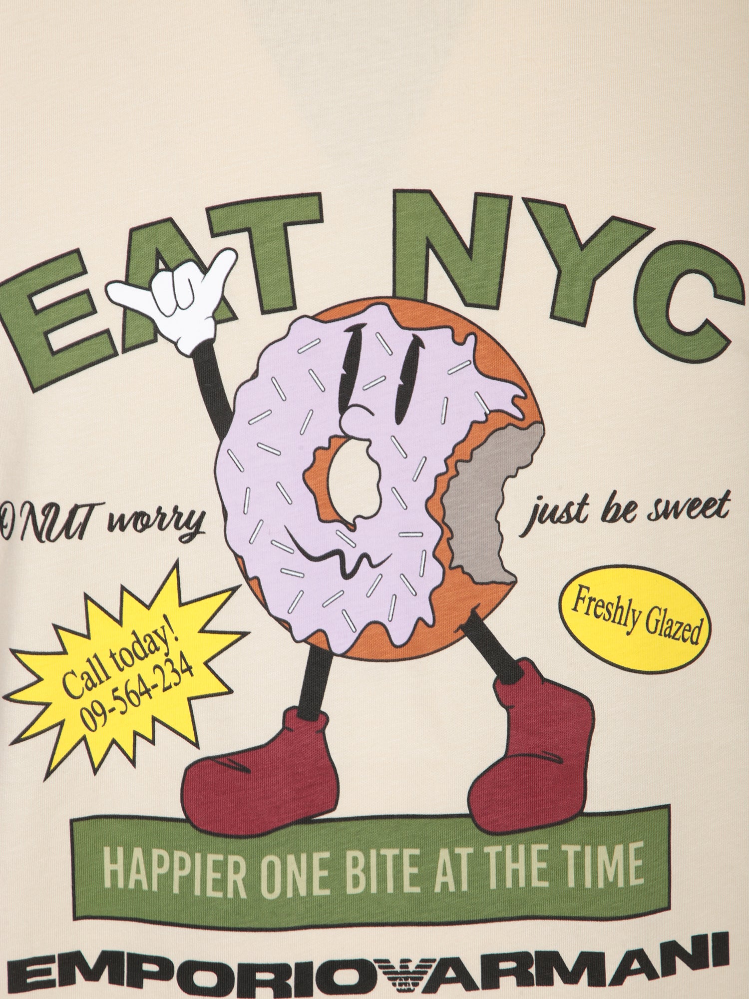 Cotton crew neck. Short sleeves. Colorful graphic print on the front.
