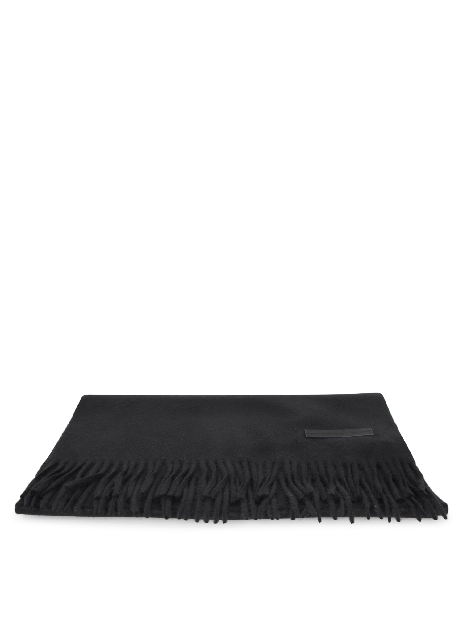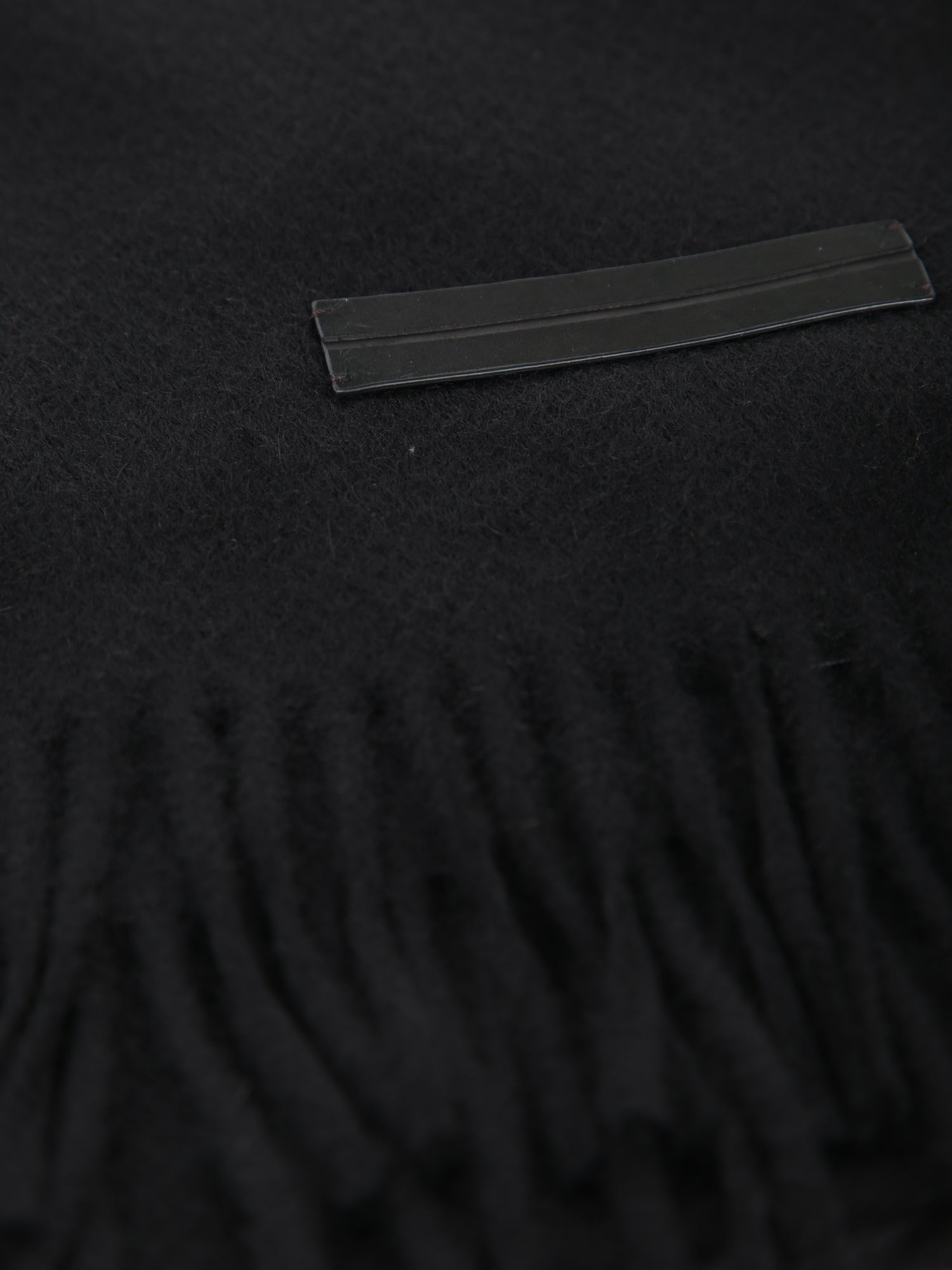 Pure cashmere scarf. Fringed edges. Leather logo patch.