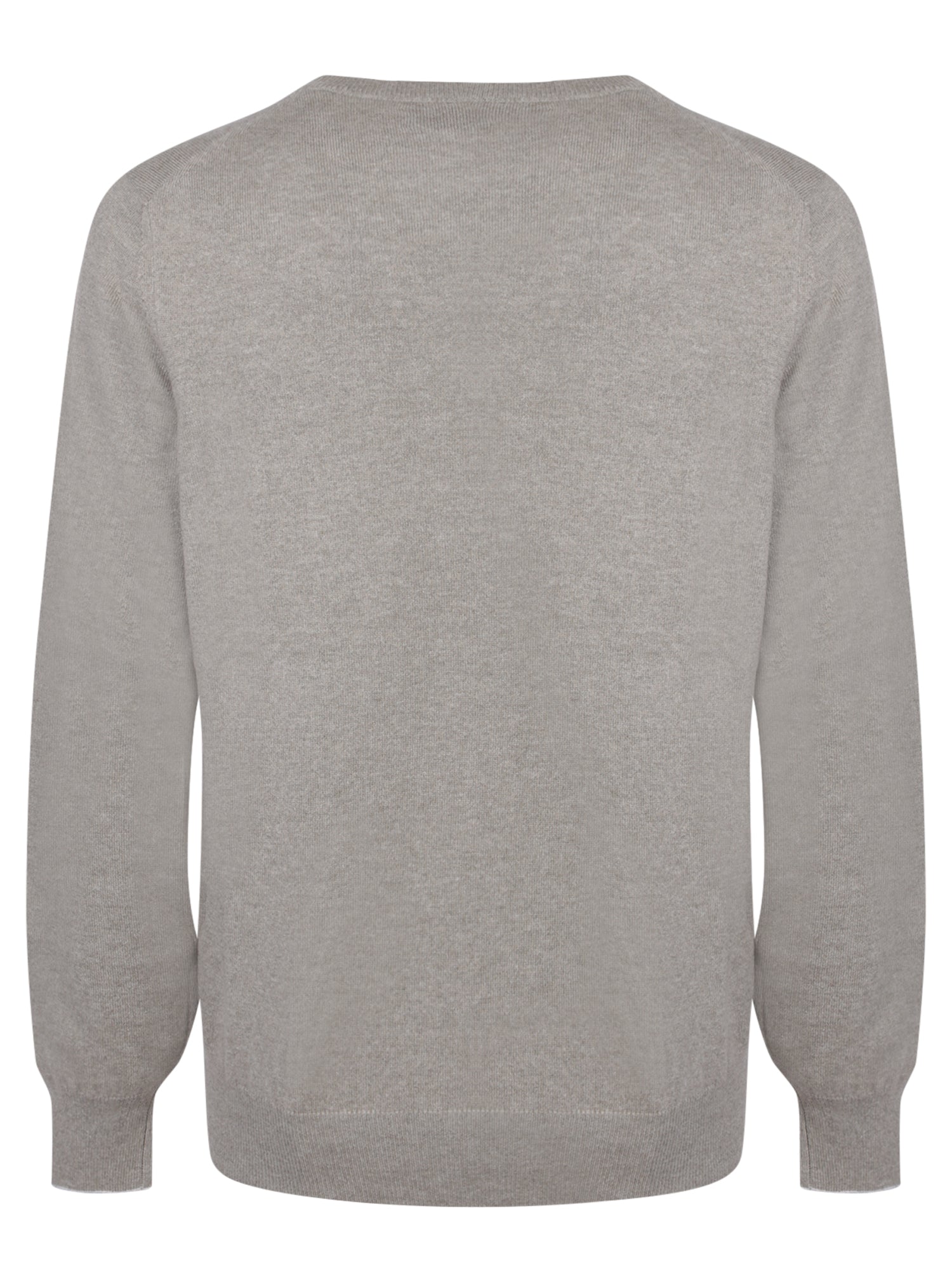 Long sleeve sweater made from pure cashmere. Ribbed finishes on collar, cuffs, and hem.