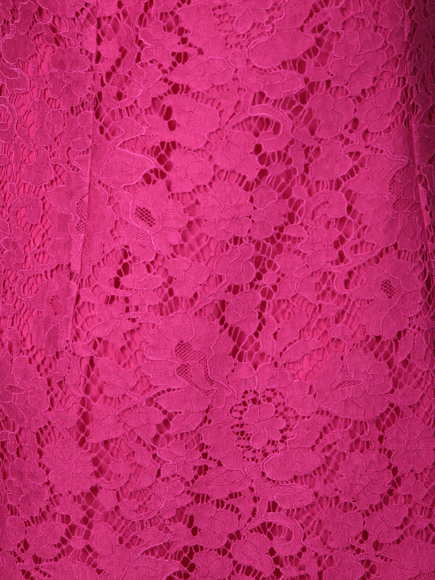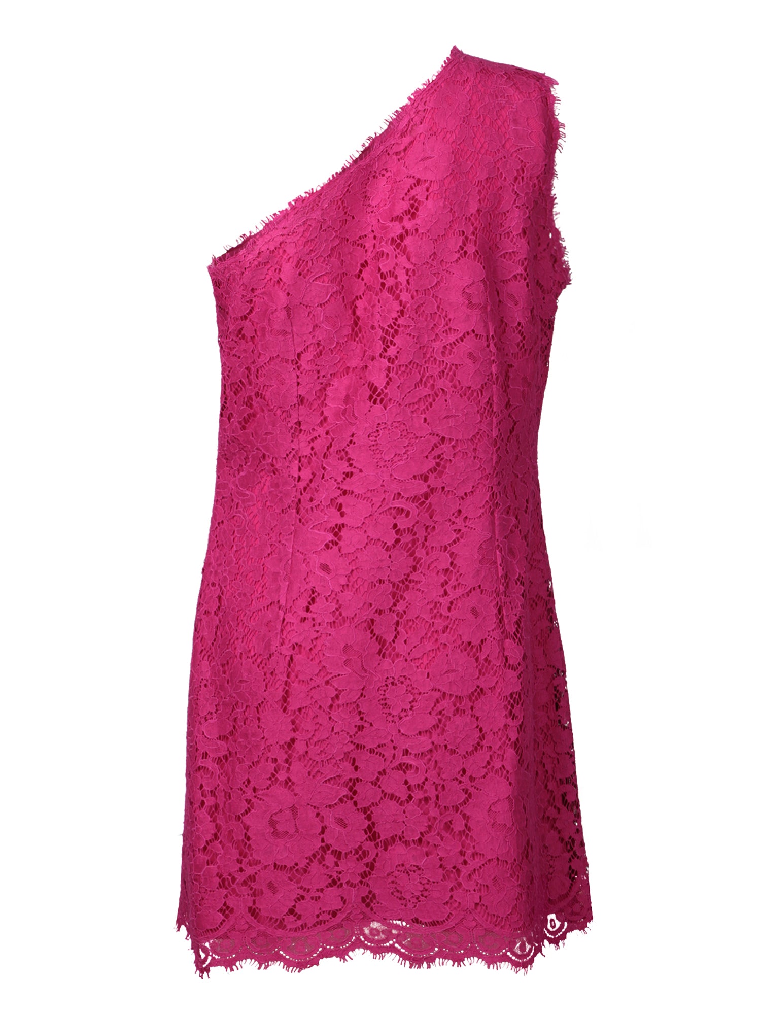 A seductive creation by Dolce & Gabbana: this fuchsia lace dress captivates with its bold one-shoulder design and asymmetric hem that enhances every movement.