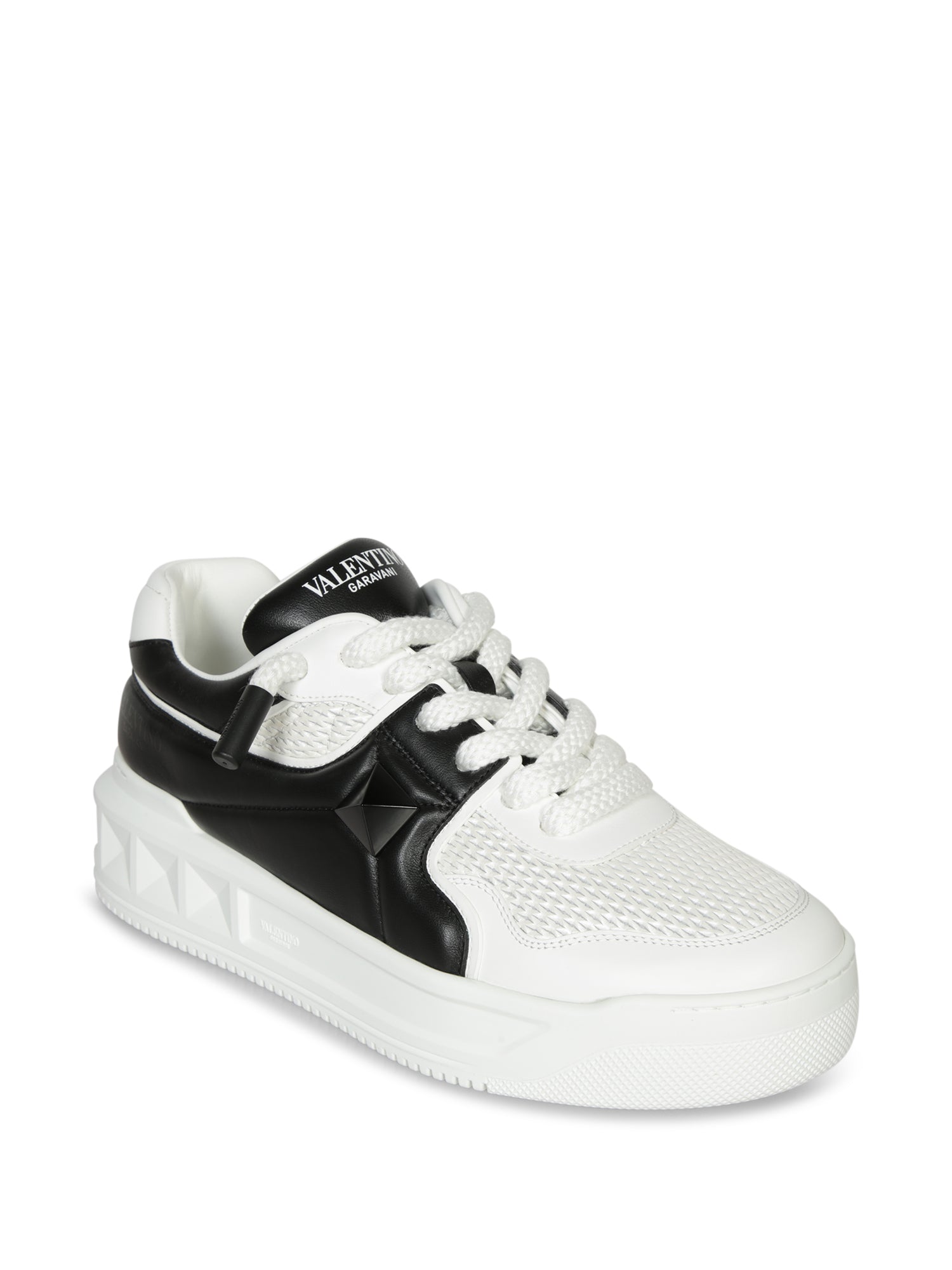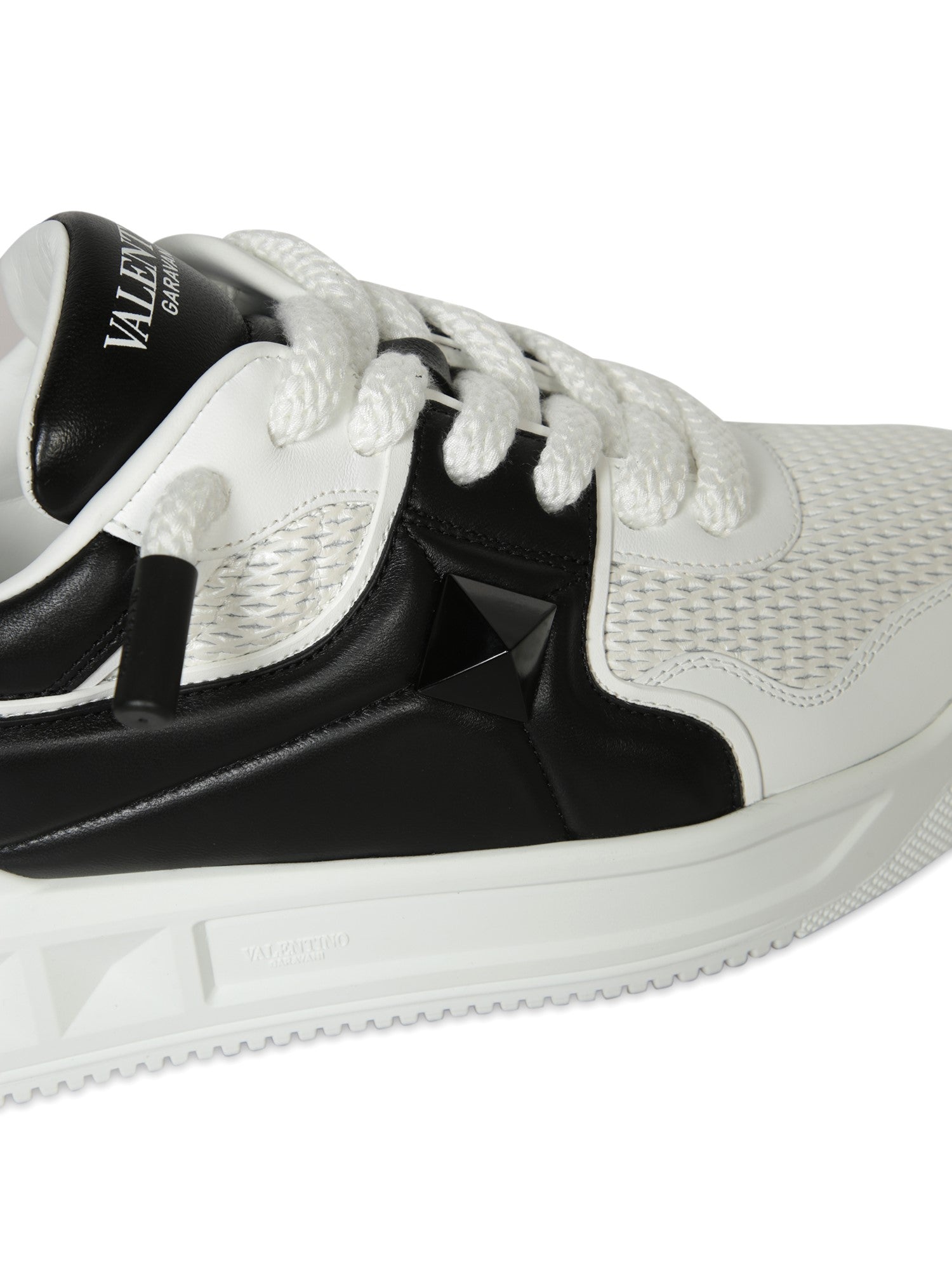 These Valentino Garavani sneakers strike a balance between fashion and function, featuring an audacious design with the iconic pyramid stud detail. The mix of textures and the elevated sole add a contemporary and distinctive touch.
