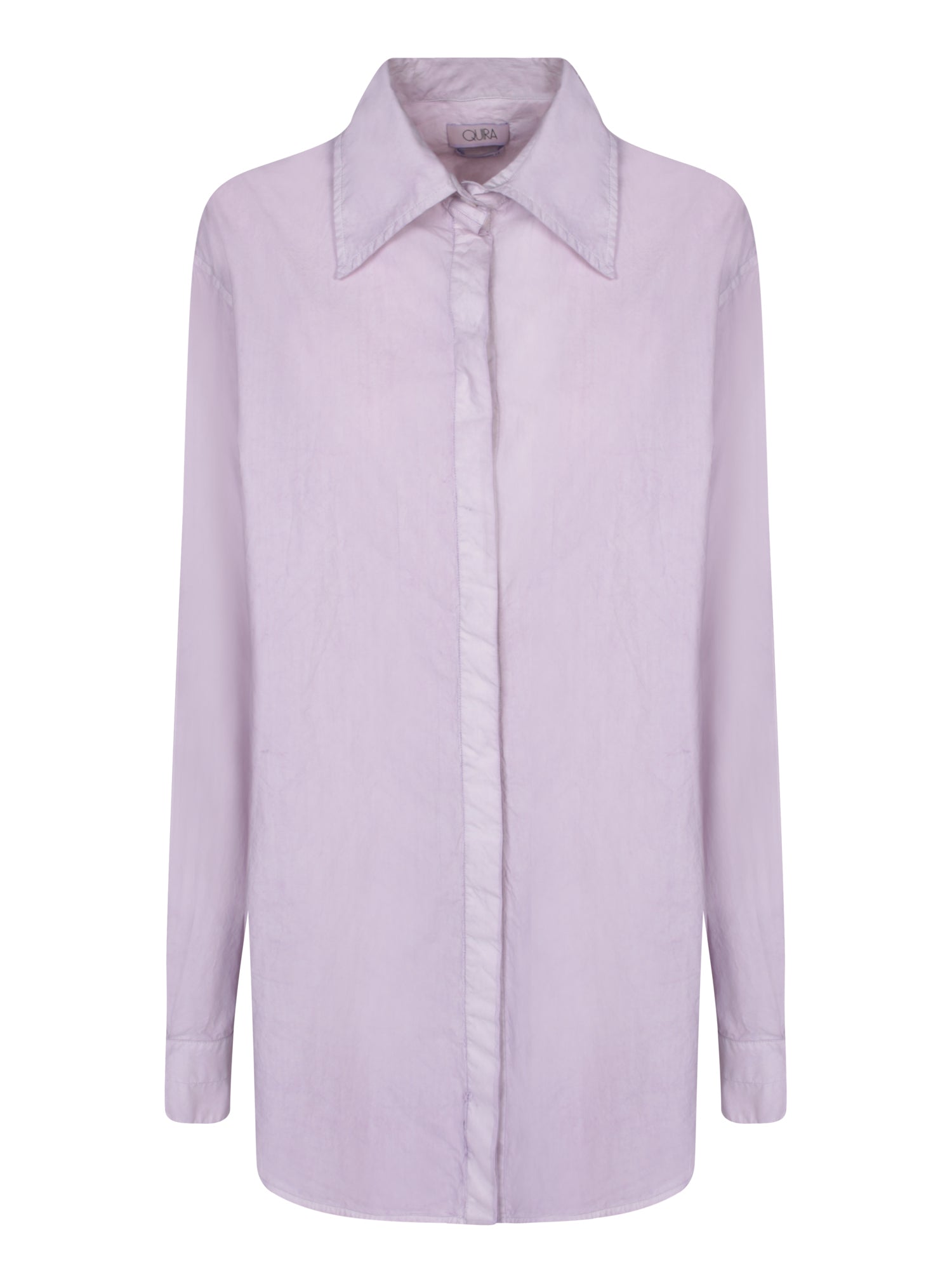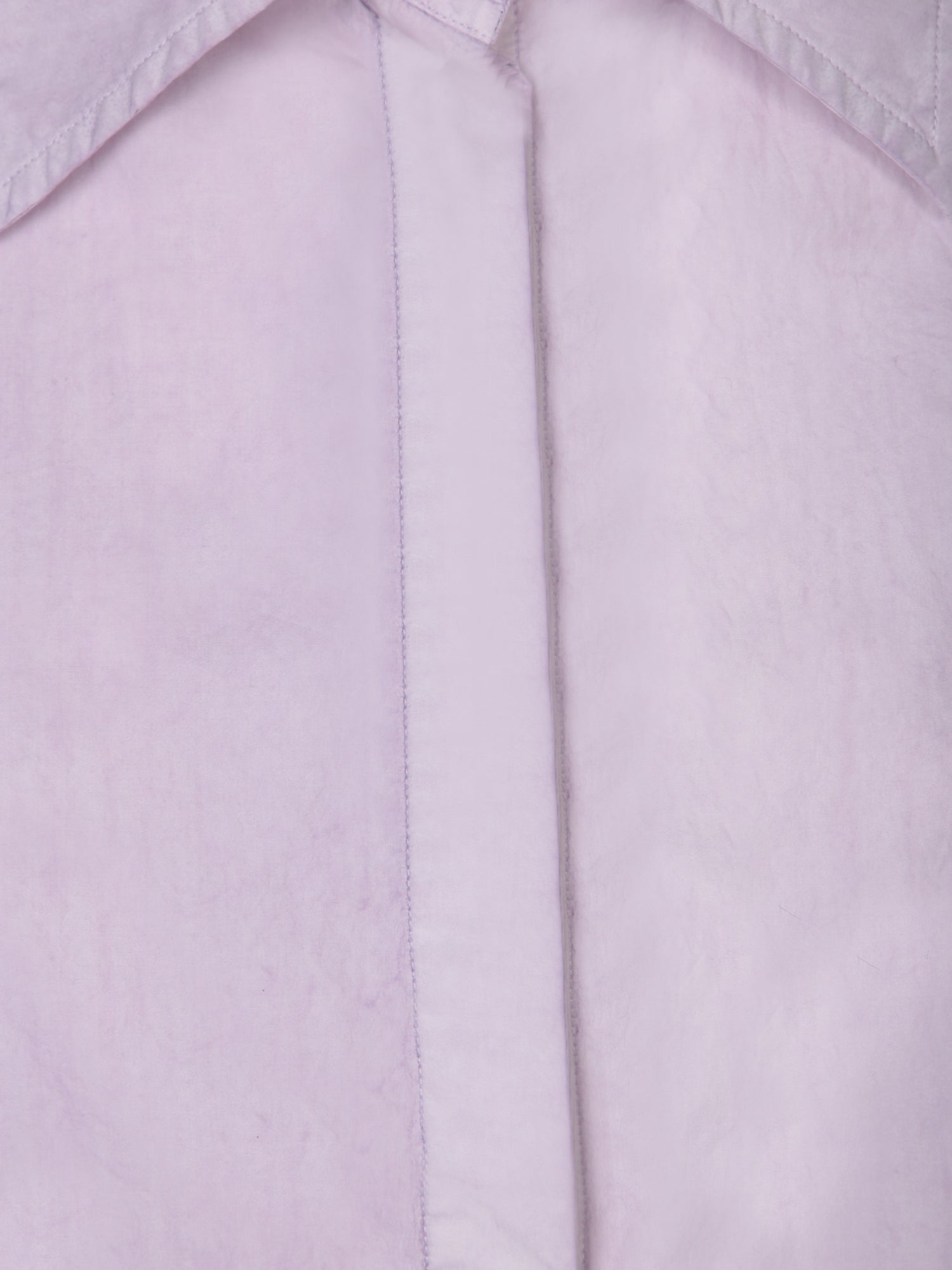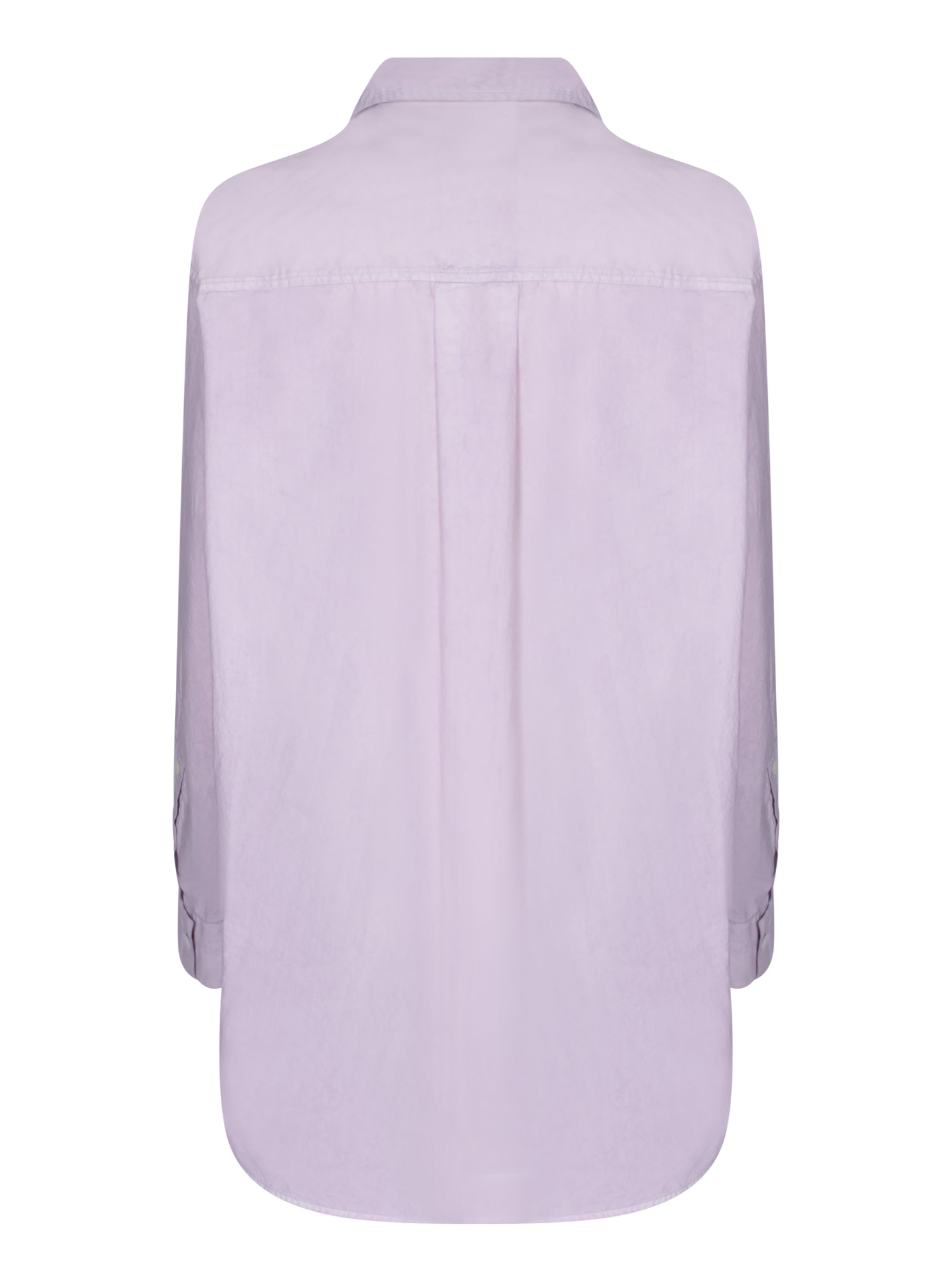 Oversized light fabric shirt with classic collar and front button fastening. Long sleeves with buttoned cuffs.