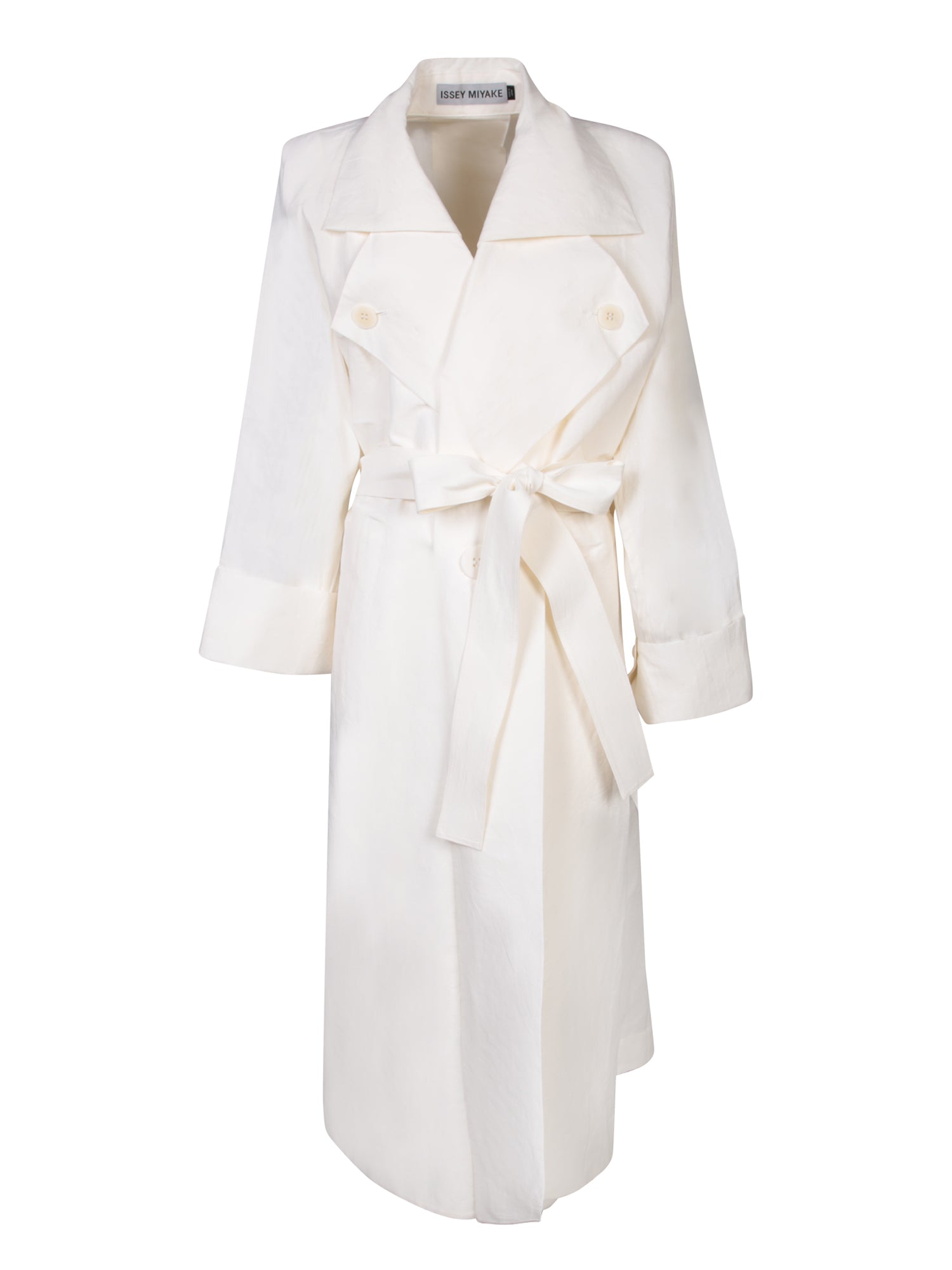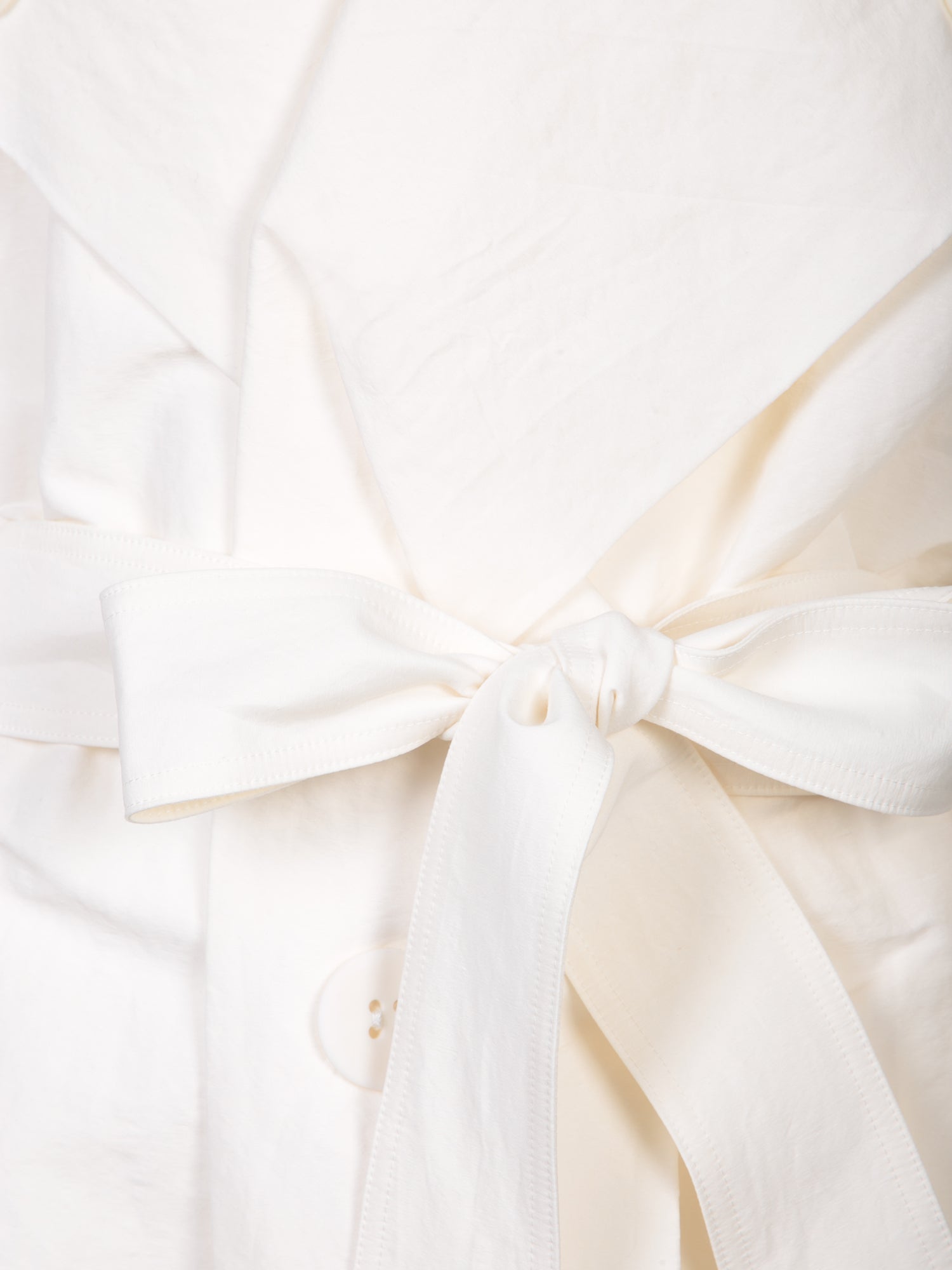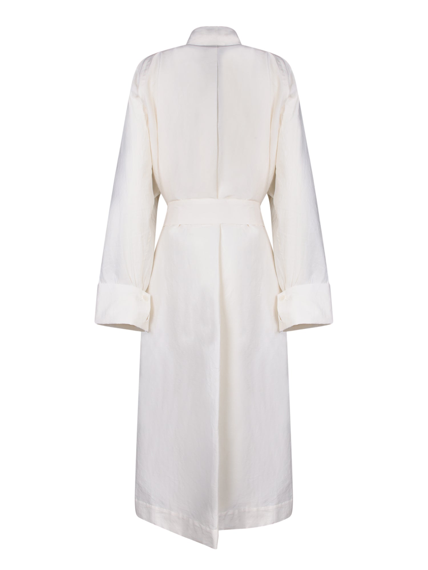 Oversize fit. Double-breasted. Front button fastening. Adjustable belted waist. Long sleeves.