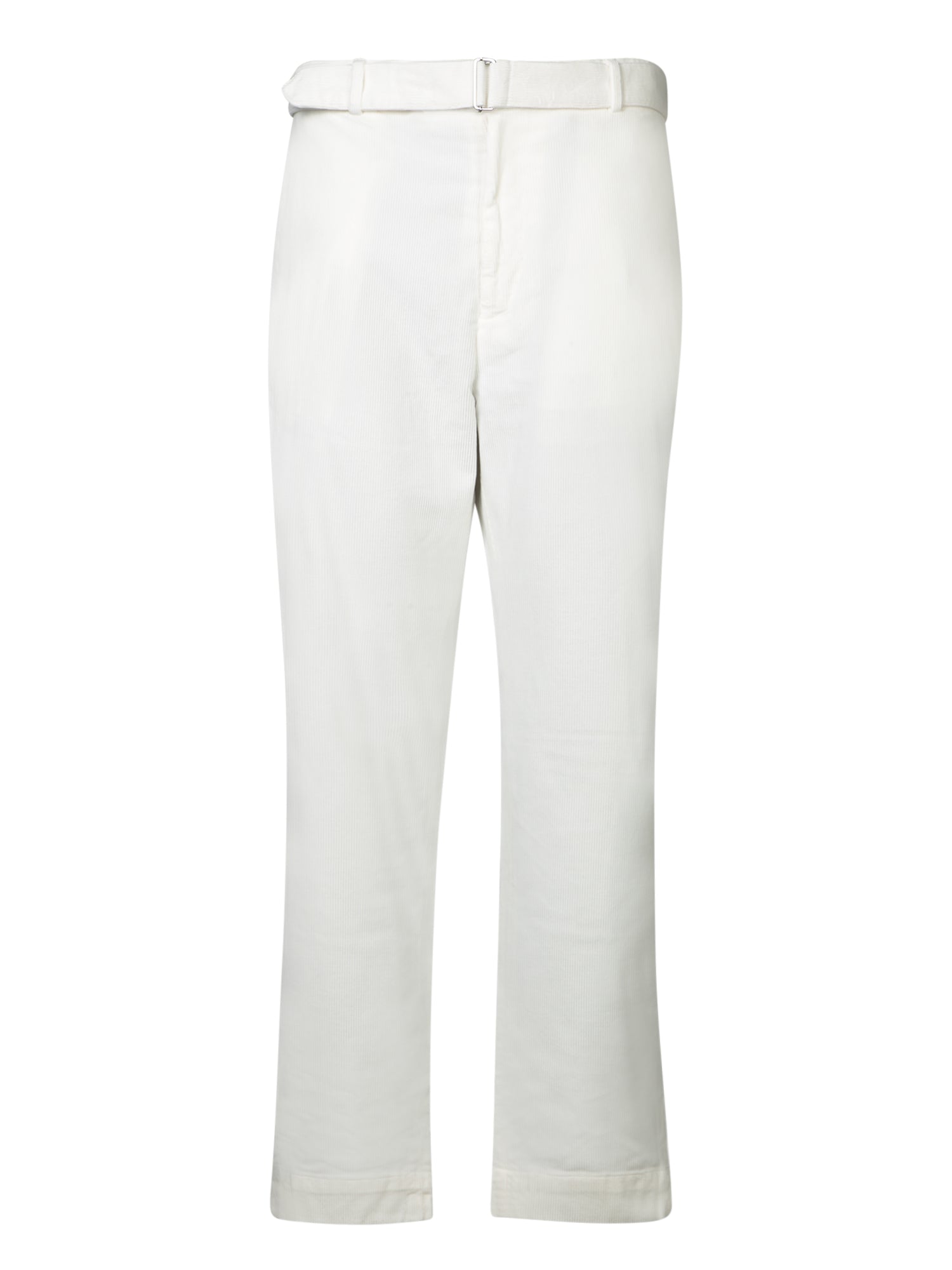Elegant Owen trousers by Officine Generale, crafted in ecru striped velvet. The pleated design adds a touch of sophistication, perfect for a formal outfit or a special evening.